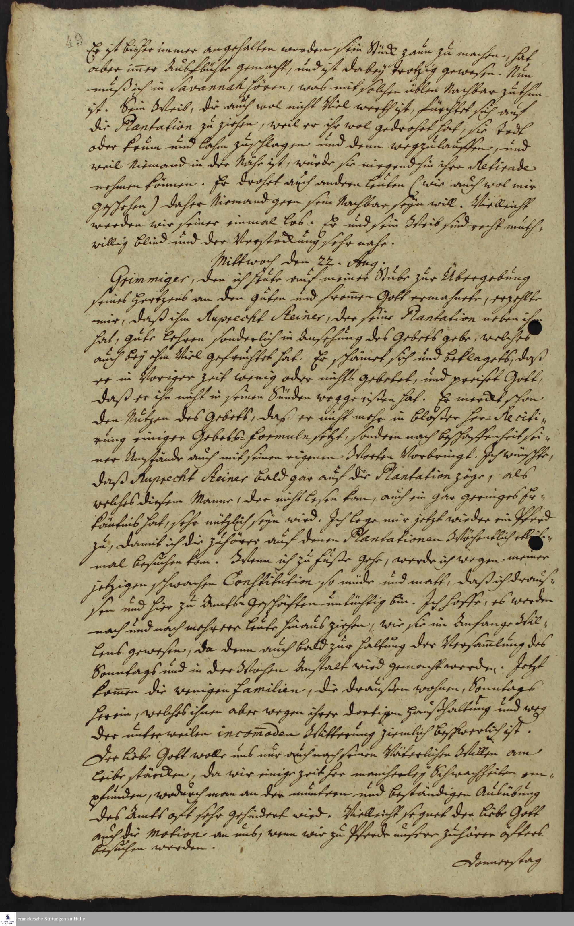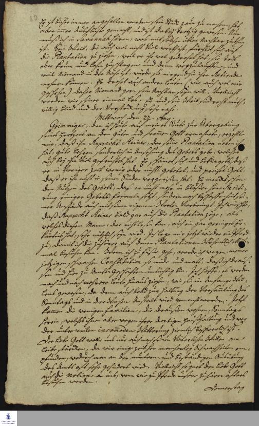 Auszug aus dem Tagebuch von Johann Martin Boltzius und Israel Christian Gronau.