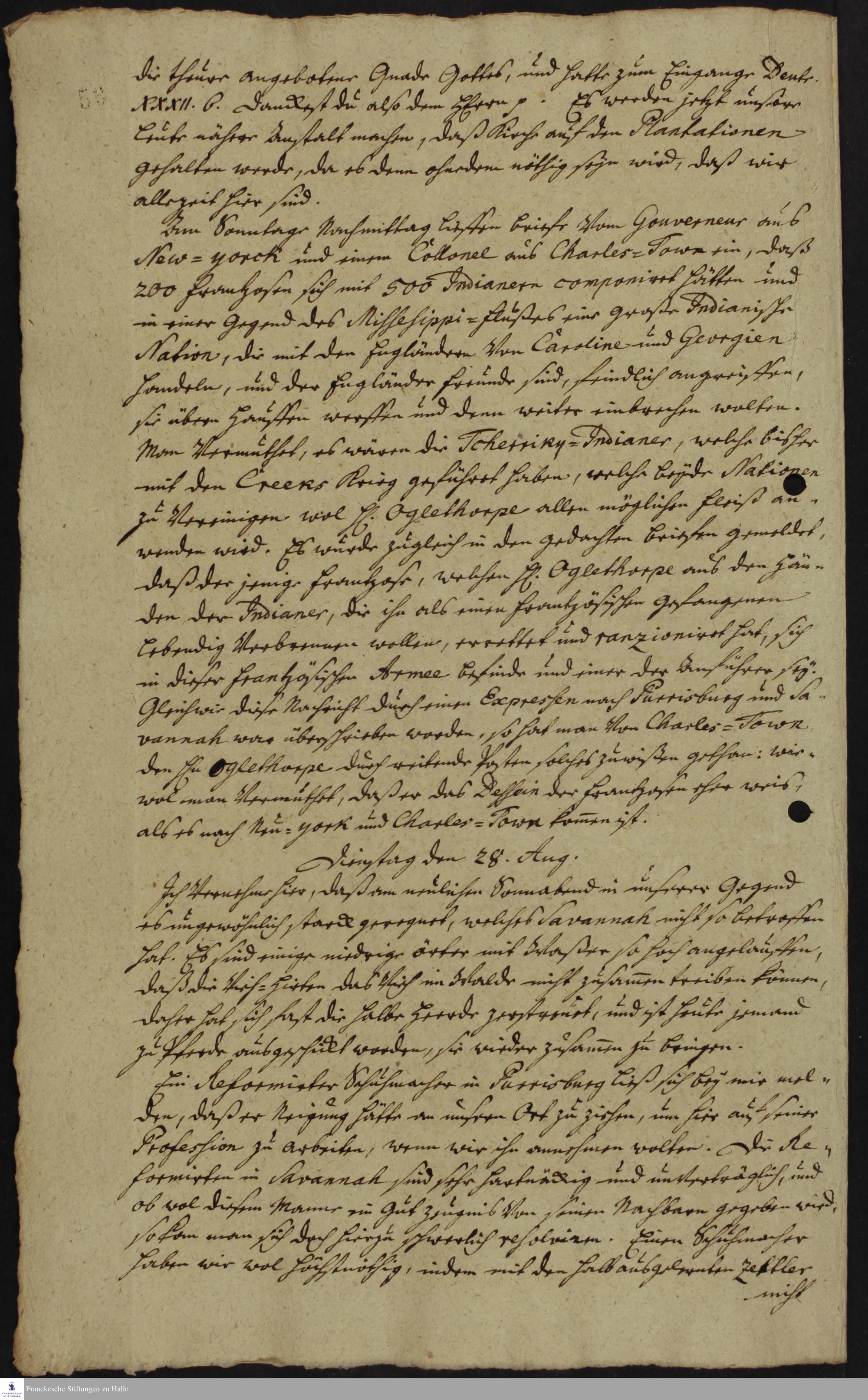 Auszug aus dem Tagebuch von Johann Martin Boltzius und Israel Christian Gronau.