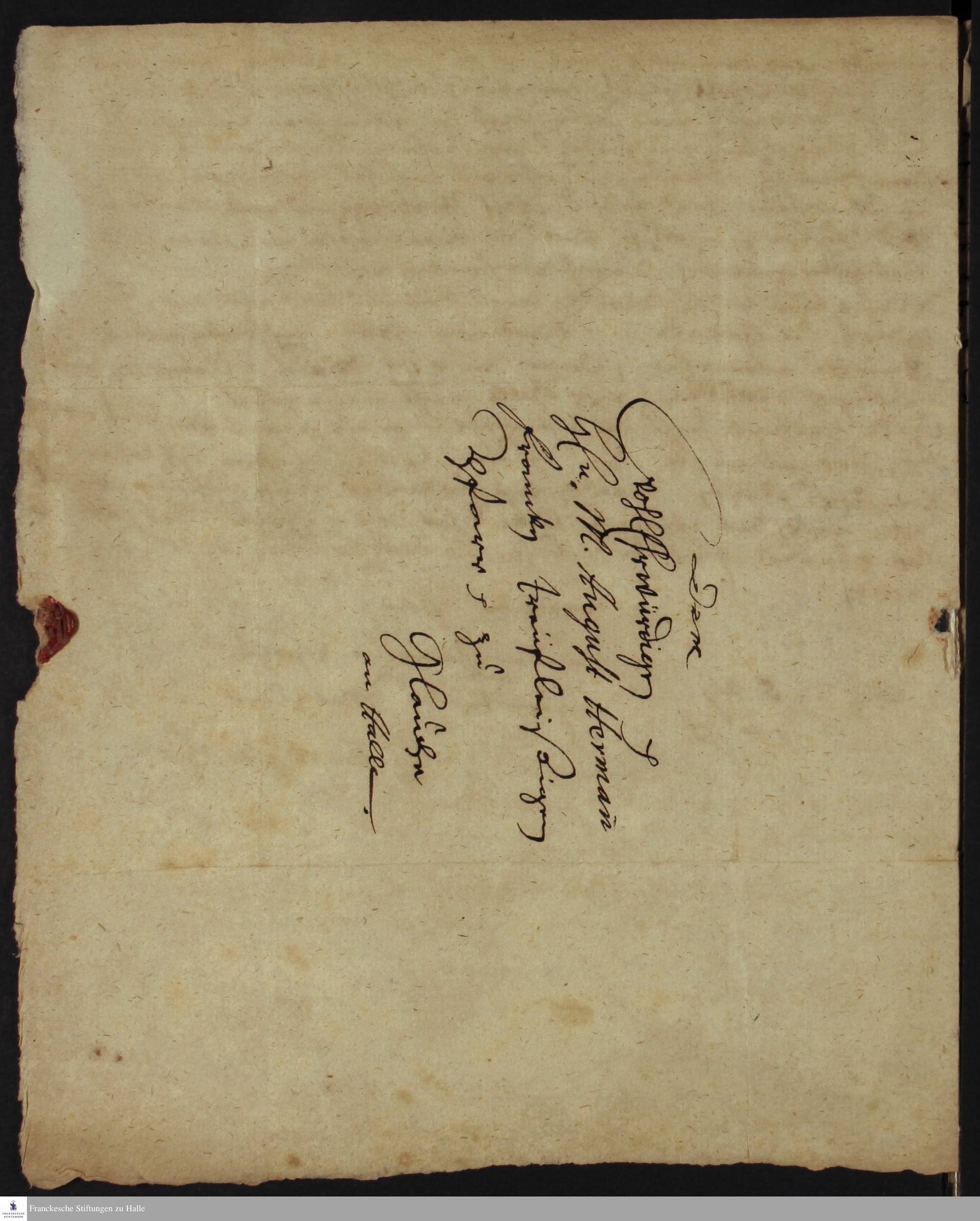 Brief von Justus Heinrich Hartz an August Hermann Francke.