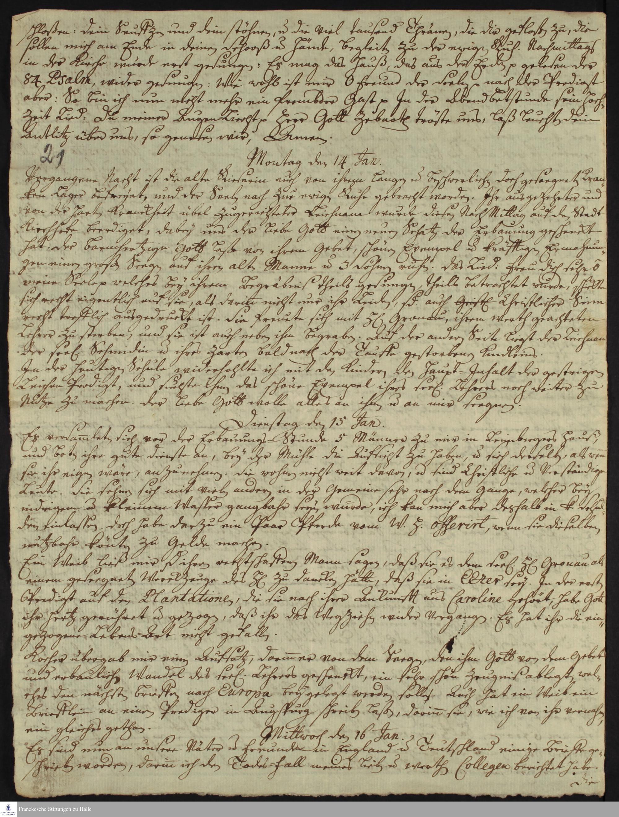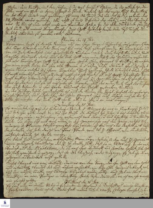 Tagebuch von Johann Martin Boltzius.