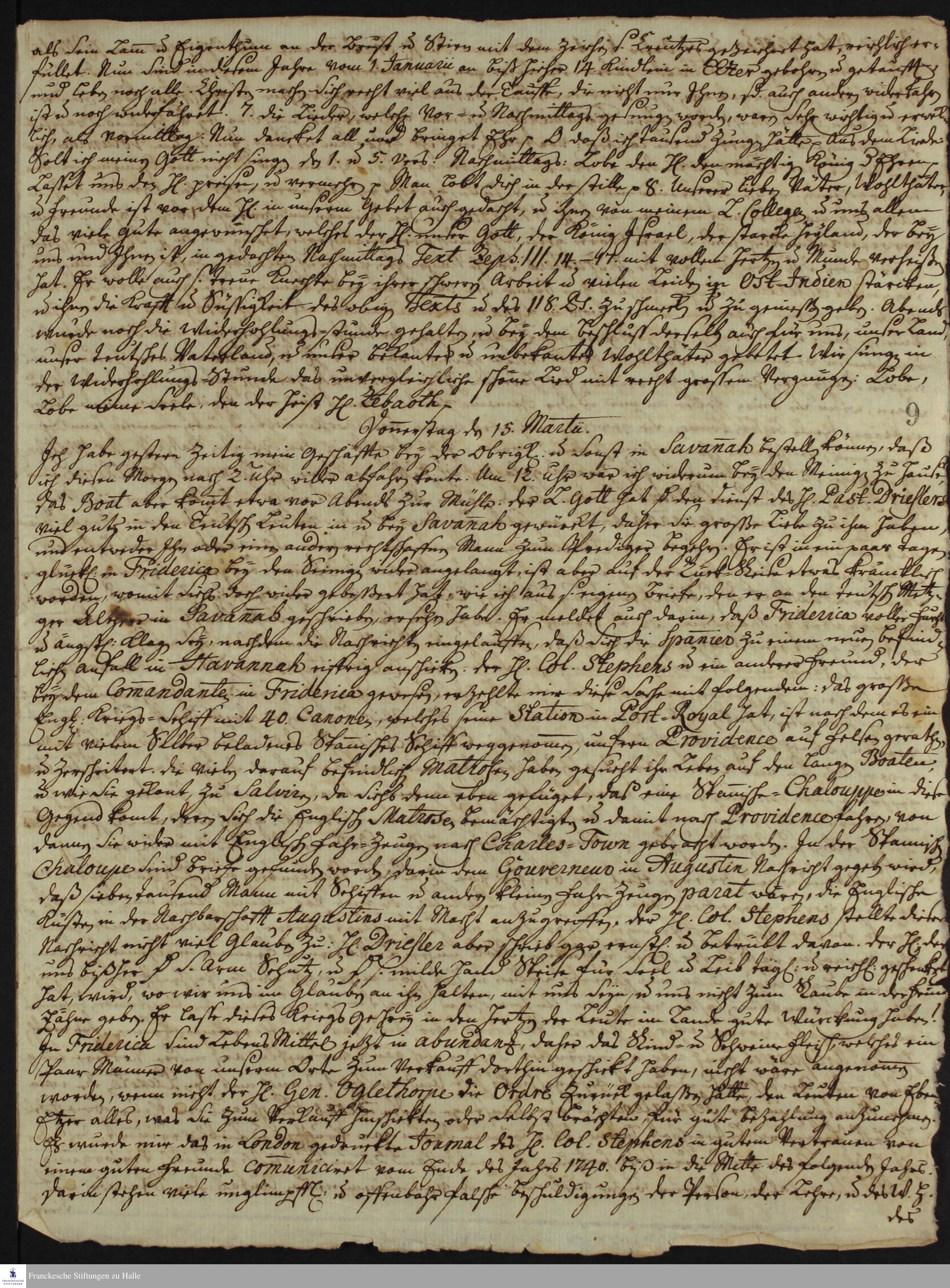 Auszüge aus dem Tagebuch von Johann Martin Boltzius und Israel Christian Gronau.