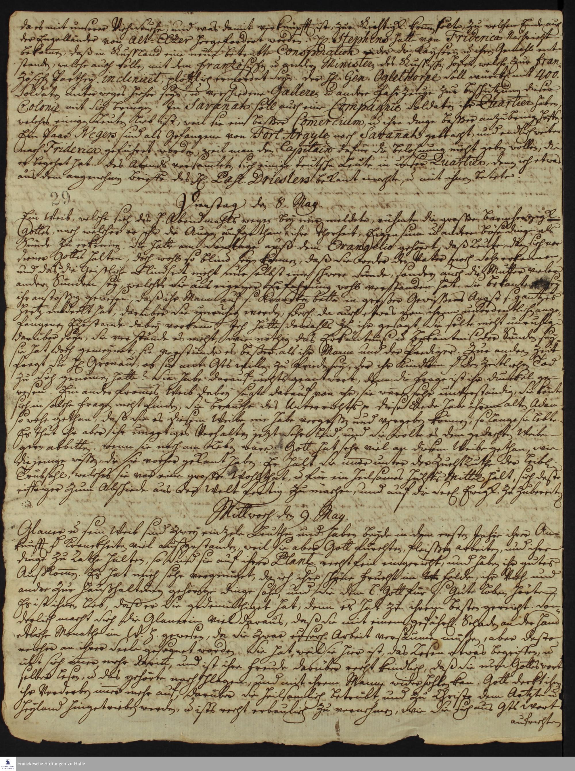 Auszüge aus dem Tagebuch von Johann Martin Boltzius und Israel Christian Gronau.