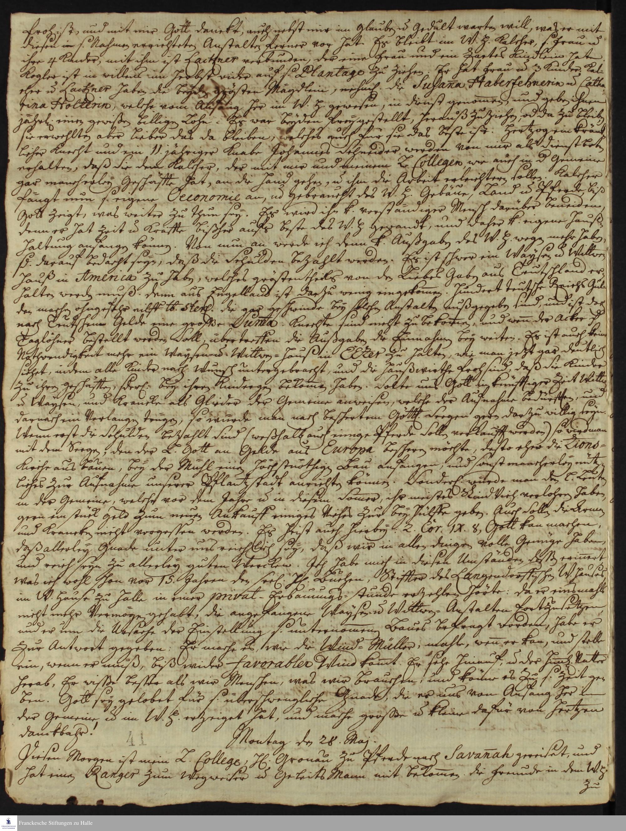 Auszüge aus dem Tagebuch von Johann Martin Boltzius und Israel Christian Gronau.