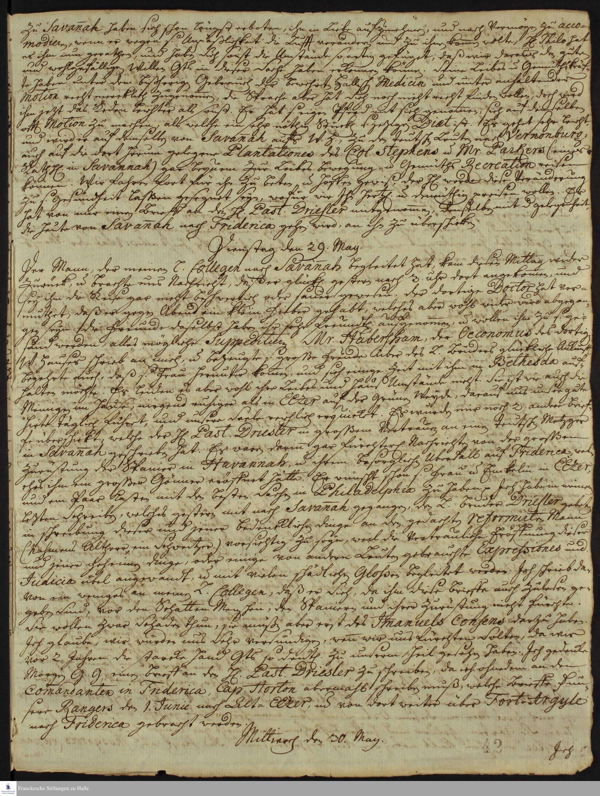 Auszüge aus dem Tagebuch von Johann Martin Boltzius und Israel Christian Gronau.