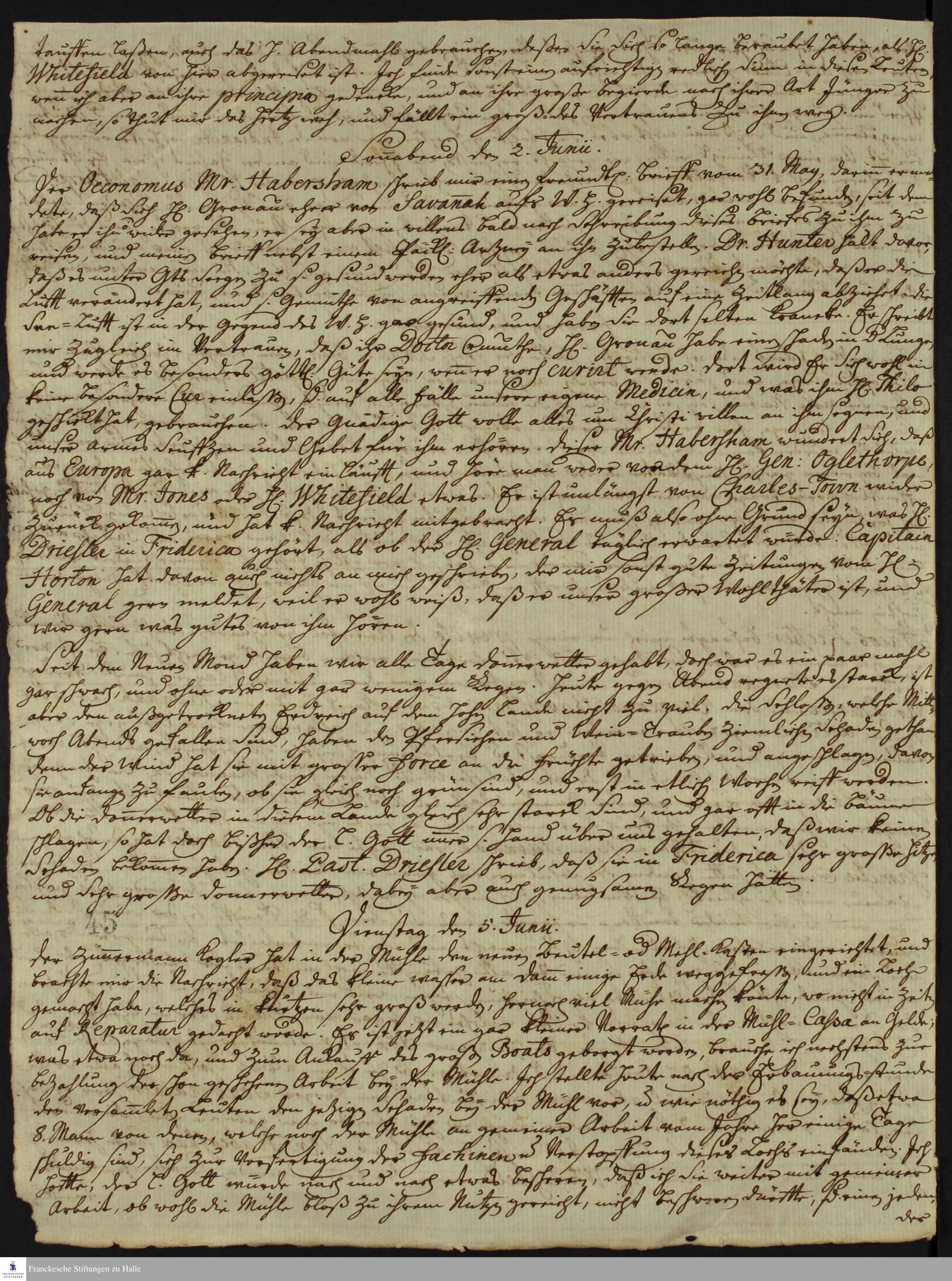 Auszüge aus dem Tagebuch von Johann Martin Boltzius und Israel Christian Gronau.