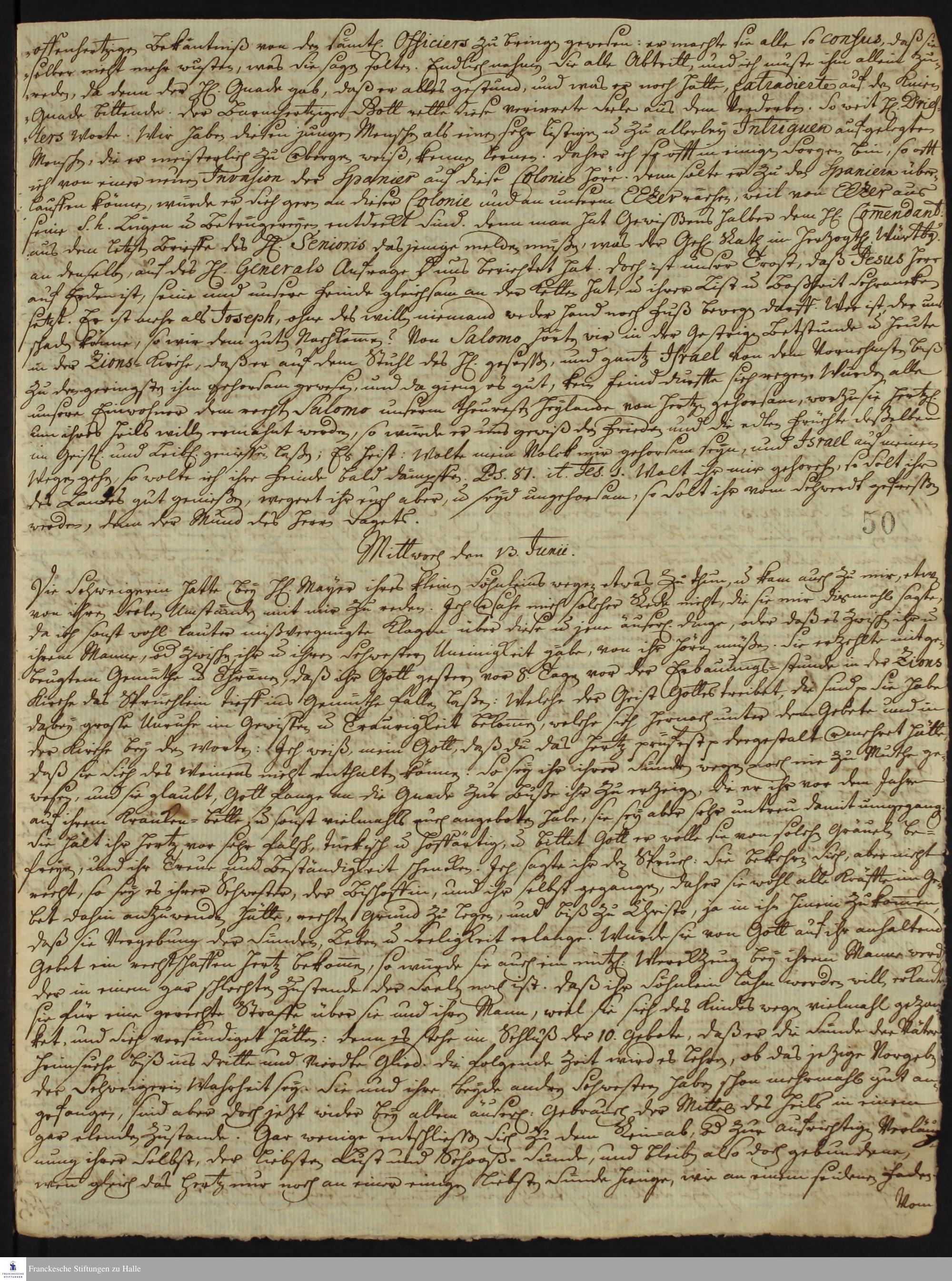 Auszüge aus dem Tagebuch von Johann Martin Boltzius und Israel Christian Gronau.