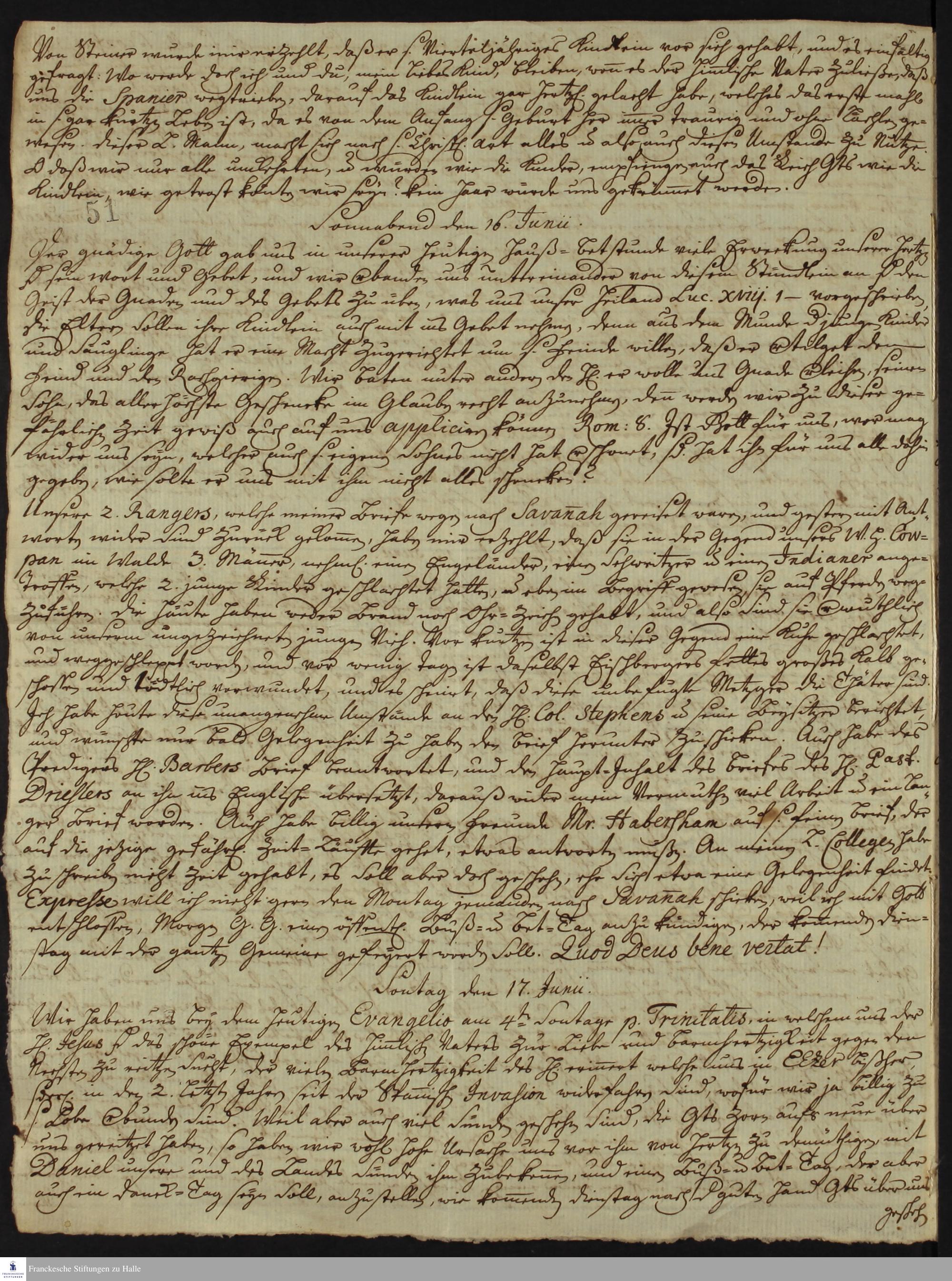 Auszüge aus dem Tagebuch von Johann Martin Boltzius und Israel Christian Gronau.