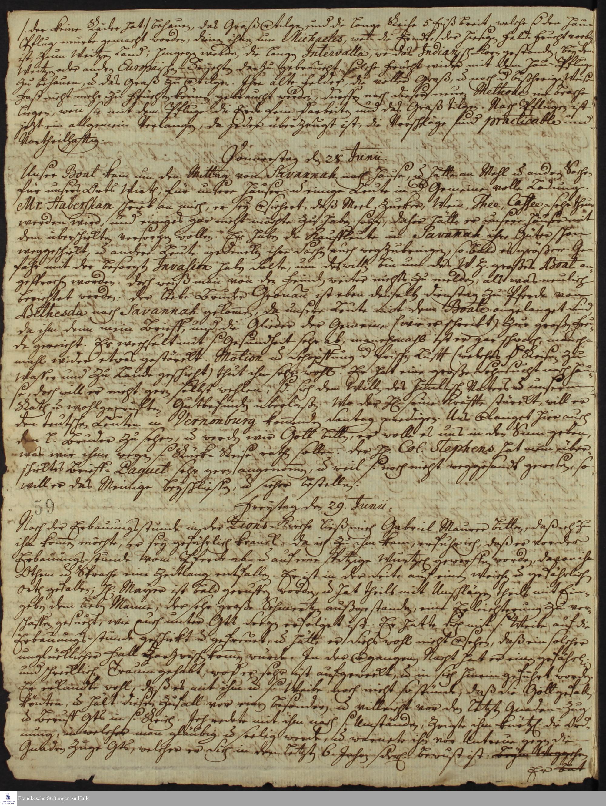Auszüge aus dem Tagebuch von Johann Martin Boltzius und Israel Christian Gronau.