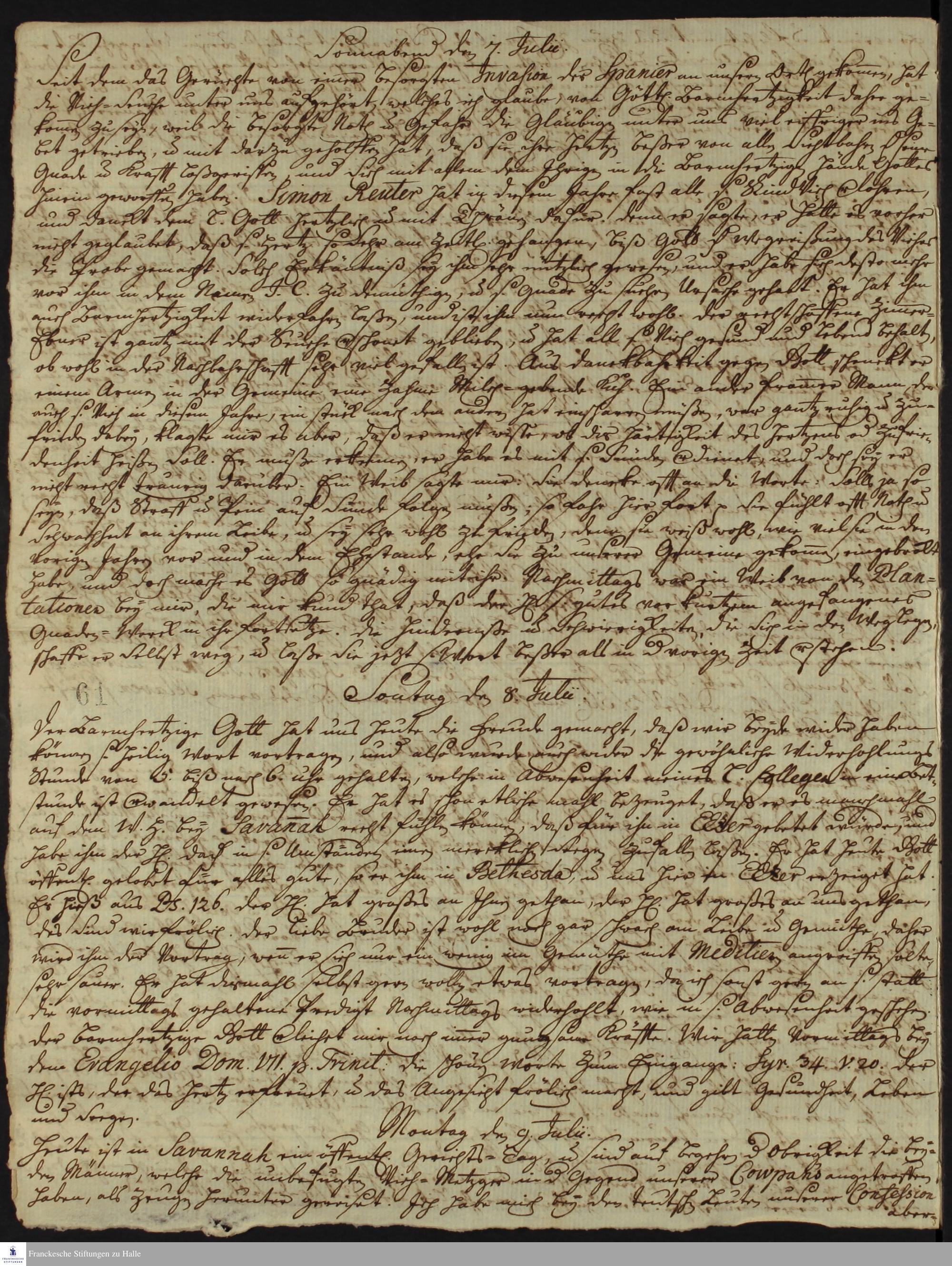 Auszüge aus dem Tagebuch von Johann Martin Boltzius und Israel Christian Gronau.