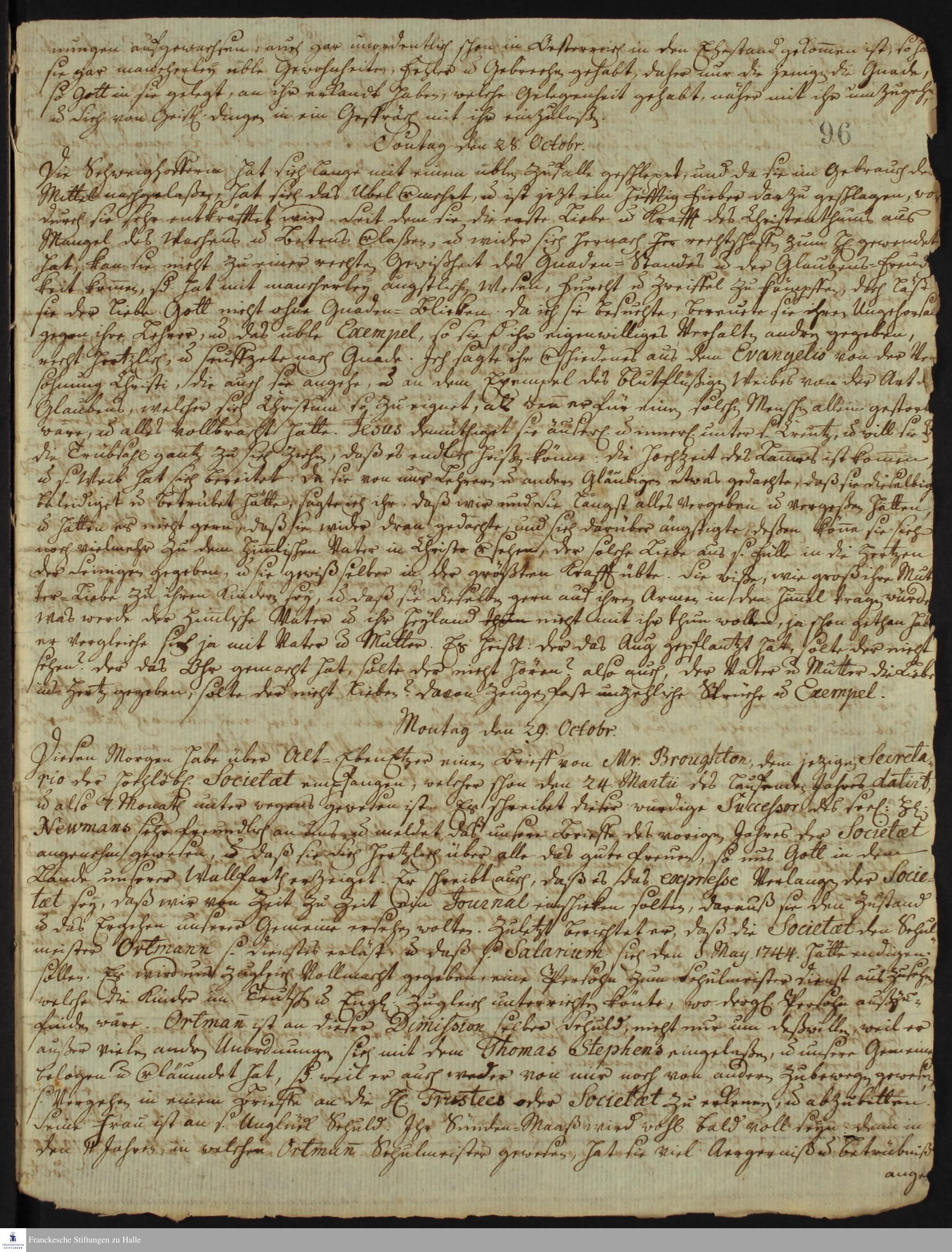 Auszüge aus dem Tagebuch von Johann Martin Boltzius und Israel Christian Gronau.