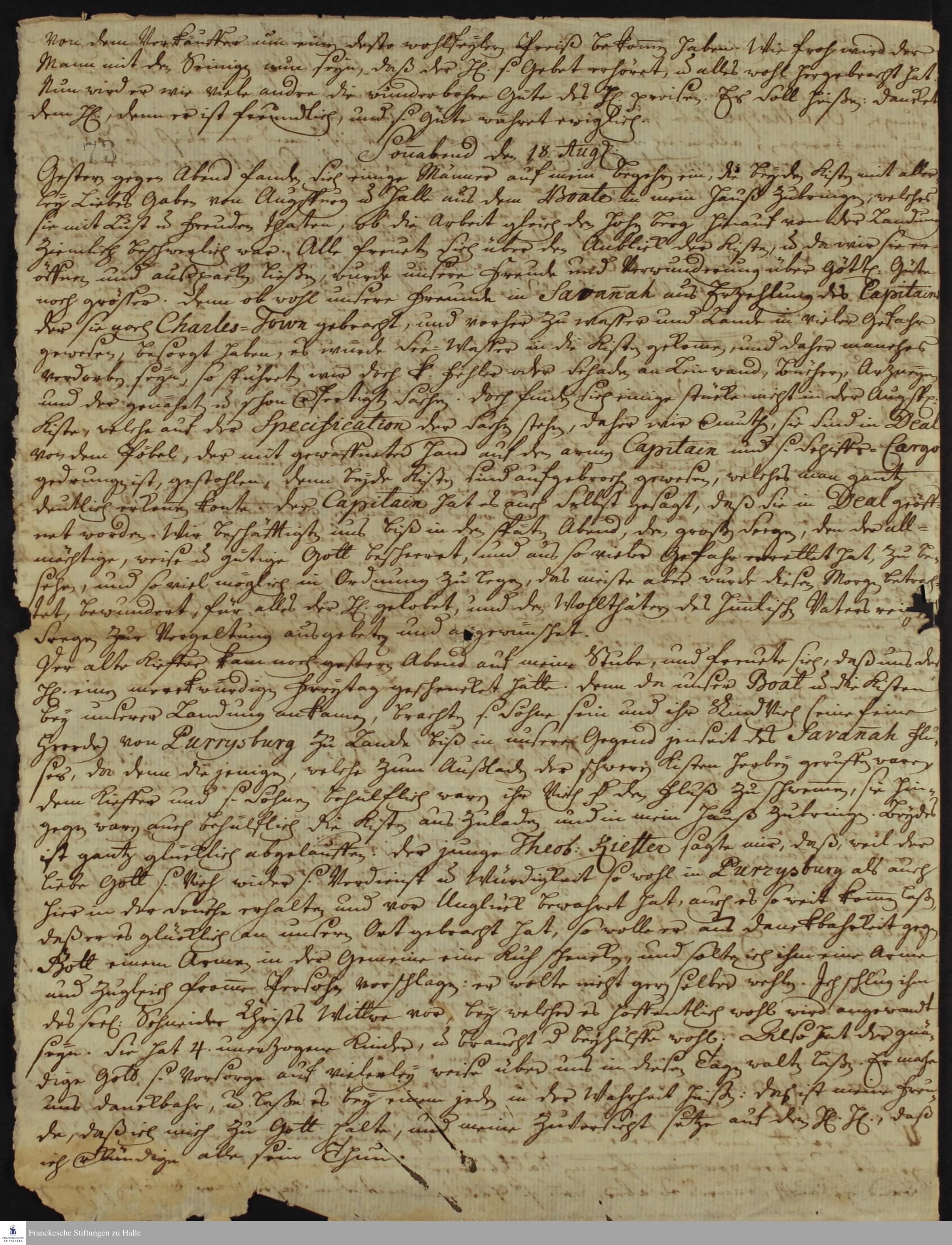 Auszüge aus dem Tagebuch von Johann Martin Boltzius und Israel Christian Gronau.