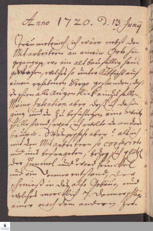 Tagebuch von Benjamin Schultze.