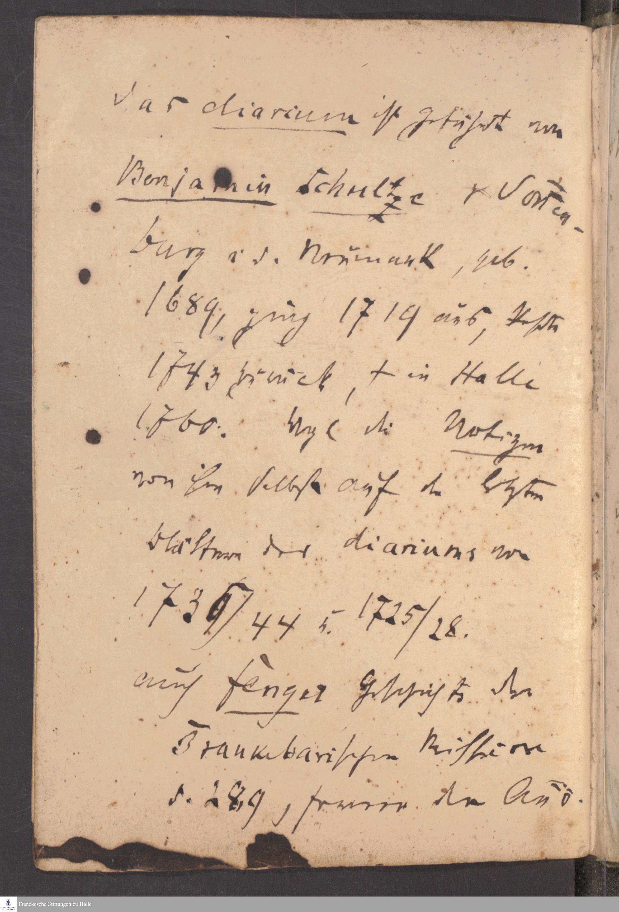 Tagebuch von Benjamin Schultze.