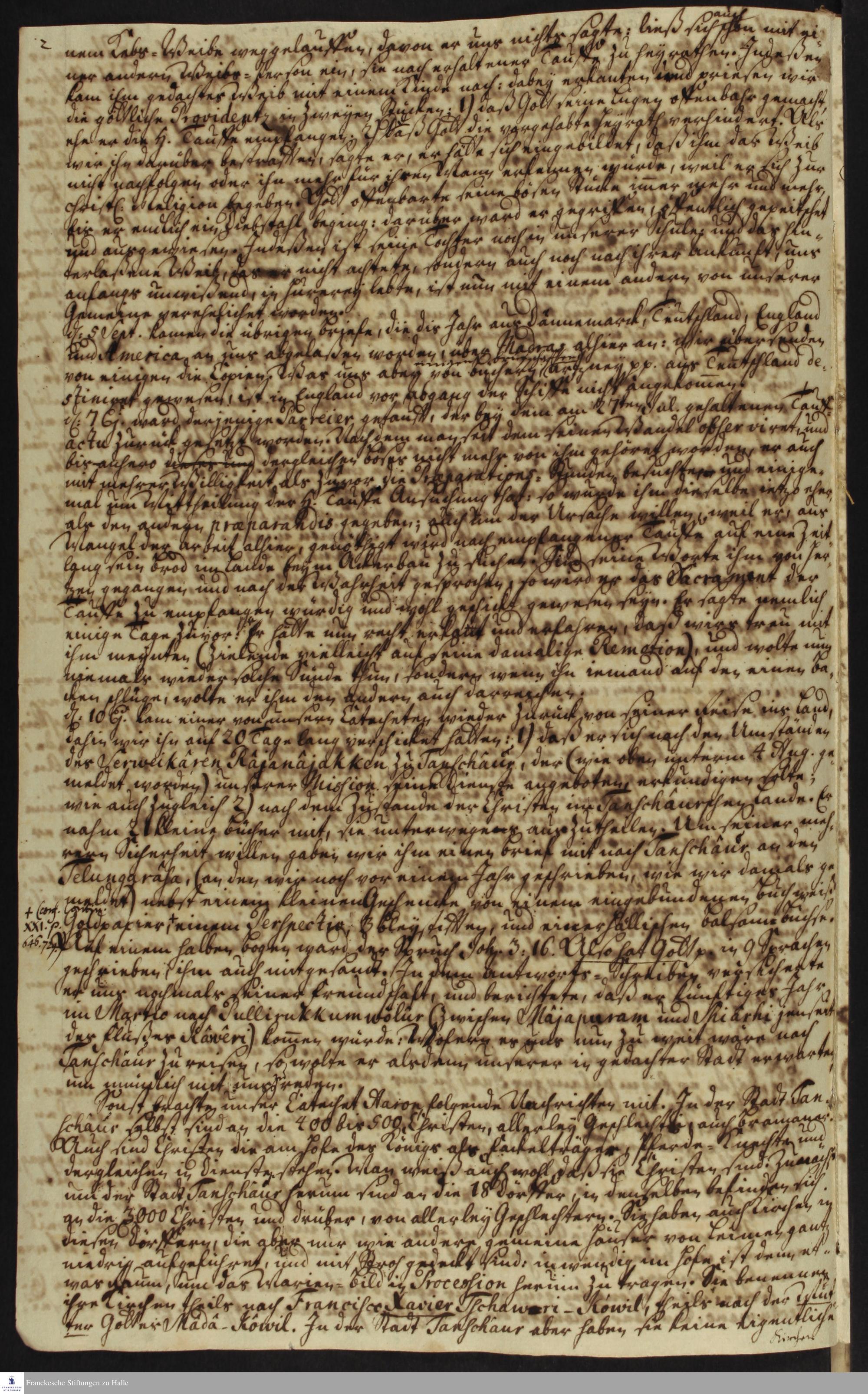 Fragment der Fortsetzung des Tagebuchs von Nikolaus Dal, Martin Bosse, Christian Friedrich Pressier und Christoph Theodosius Walter an das Missionskollegium in Kopenhagen.