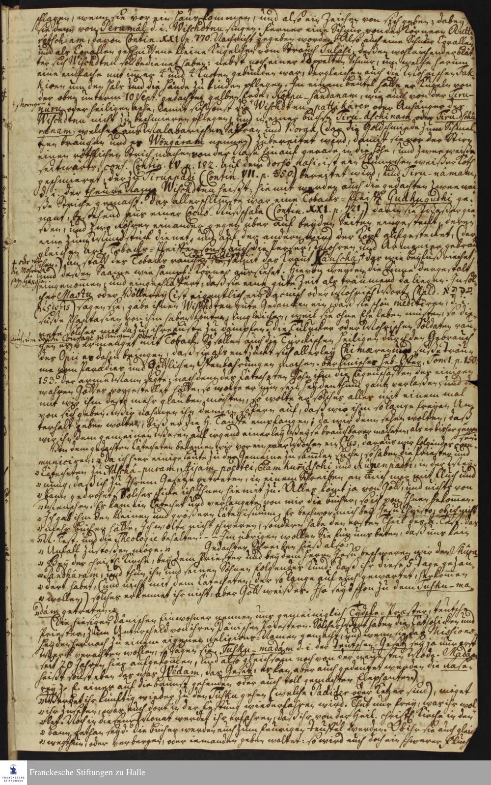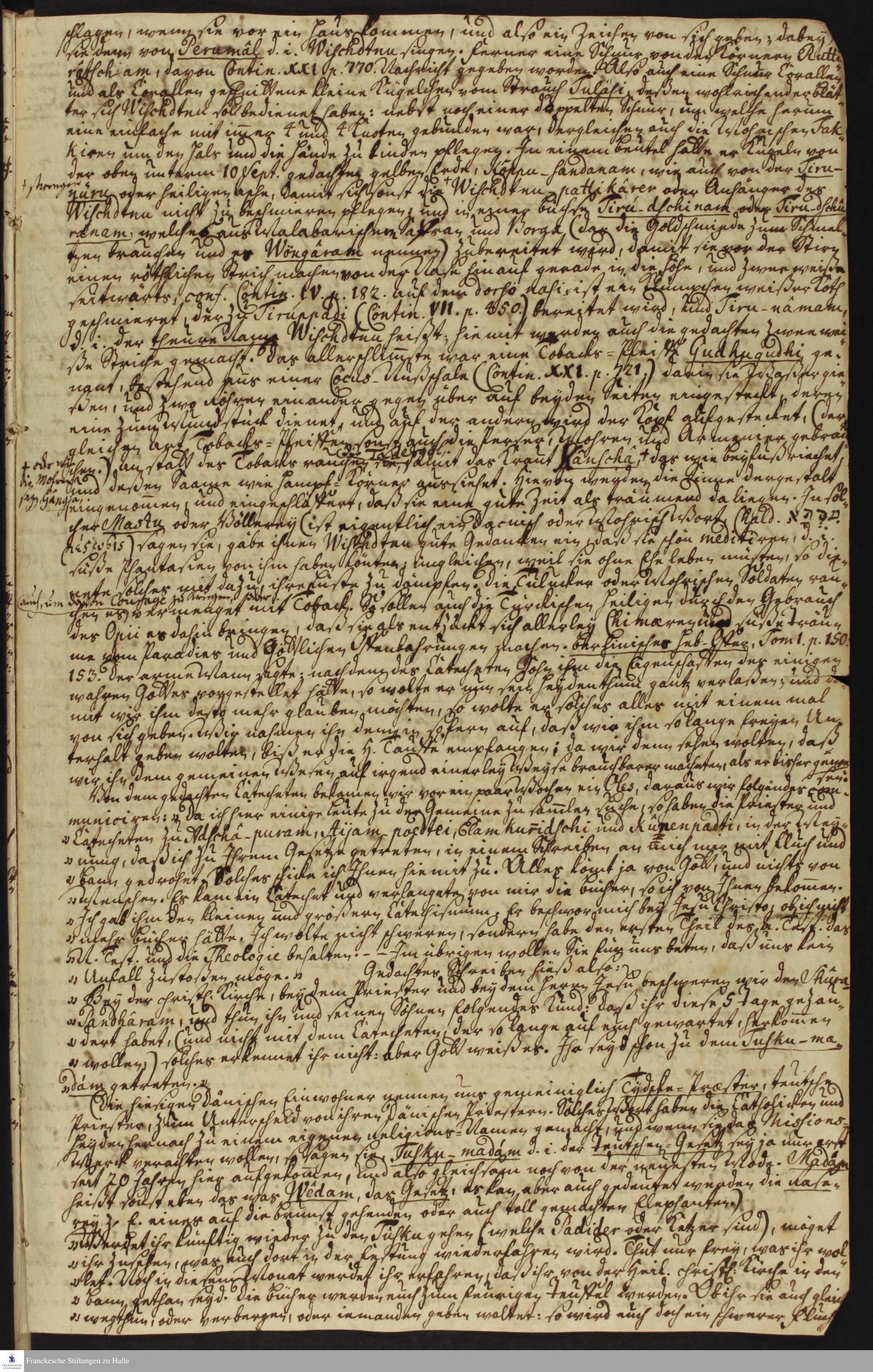 Fragment der Fortsetzung des Tagebuchs von Nikolaus Dal, Martin Bosse, Christian Friedrich Pressier und Christoph Theodosius Walter an das Missionskollegium in Kopenhagen.