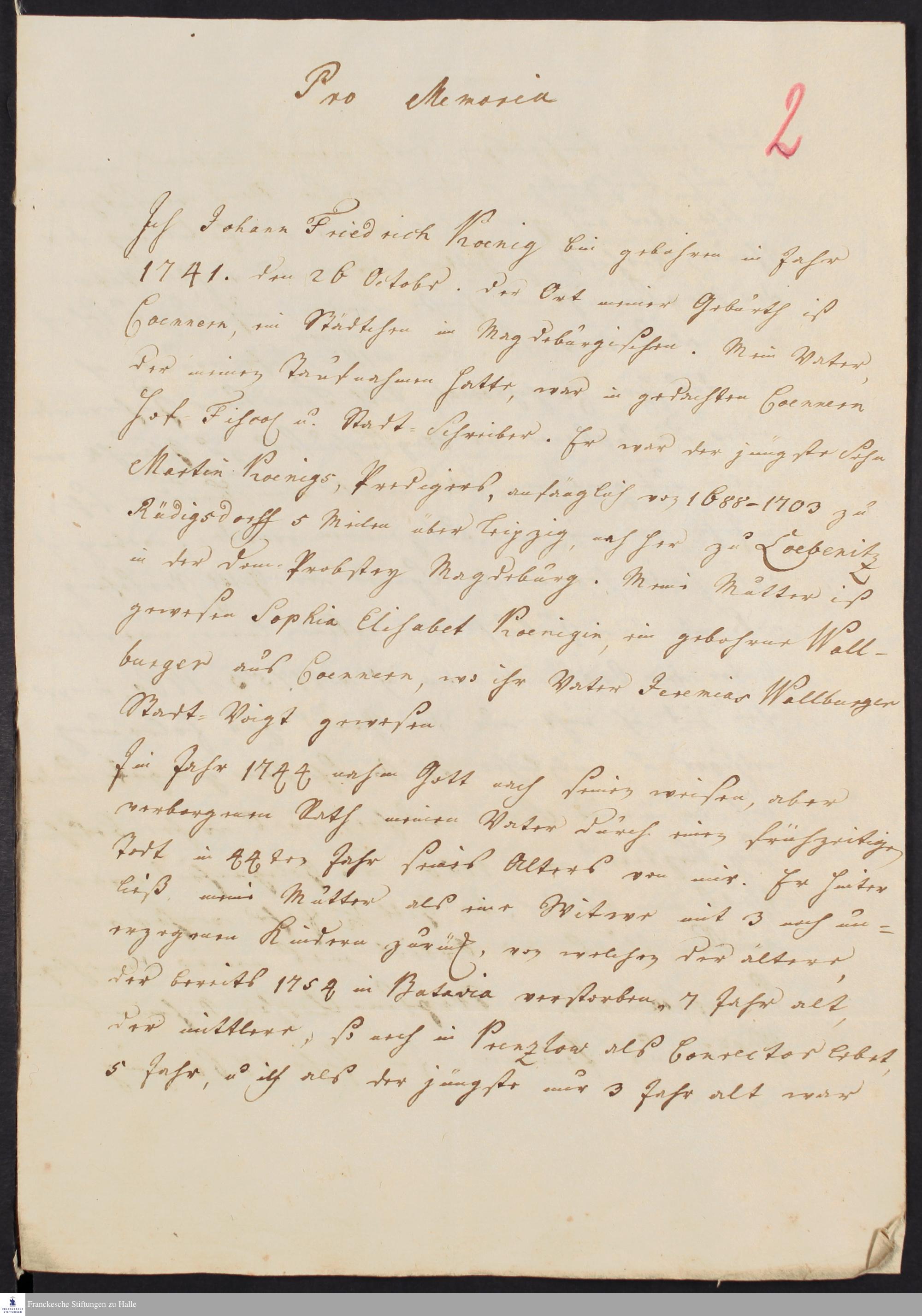 Lebenslauf von Johann Friedrich König.