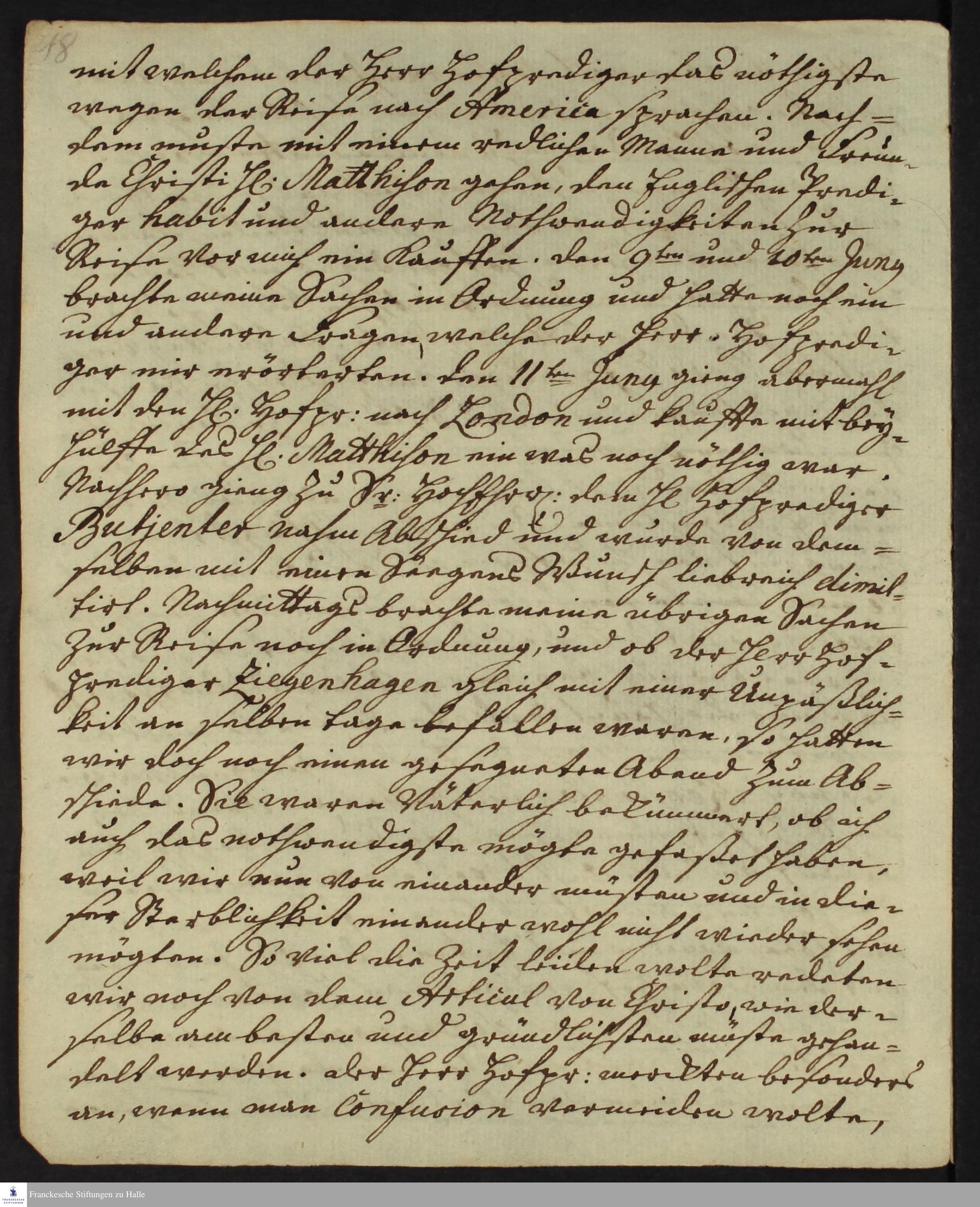 Reisetagebuch von Heinrich Melchior Mühlenberg.