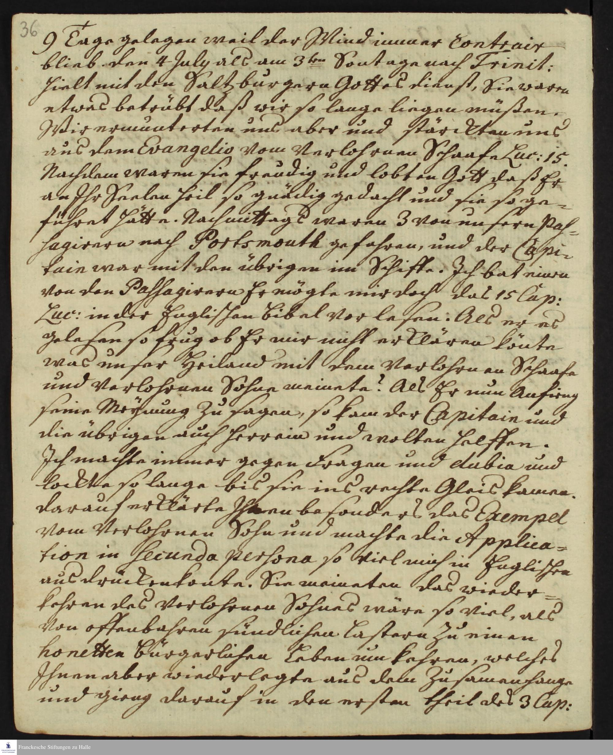 Reisetagebuch von Heinrich Melchior Mühlenberg.