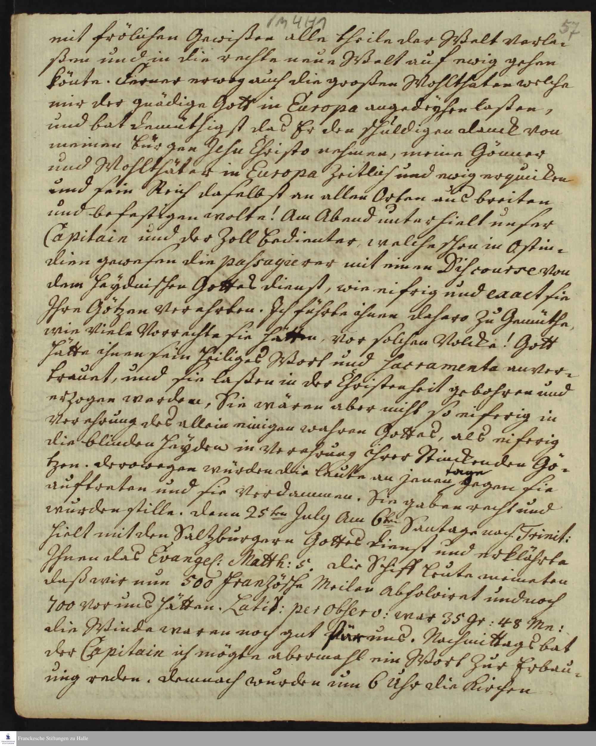 Reisetagebuch von Heinrich Melchior Mühlenberg.