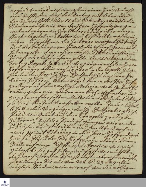 Reisetagebuch von Heinrich Melchior Mühlenberg.