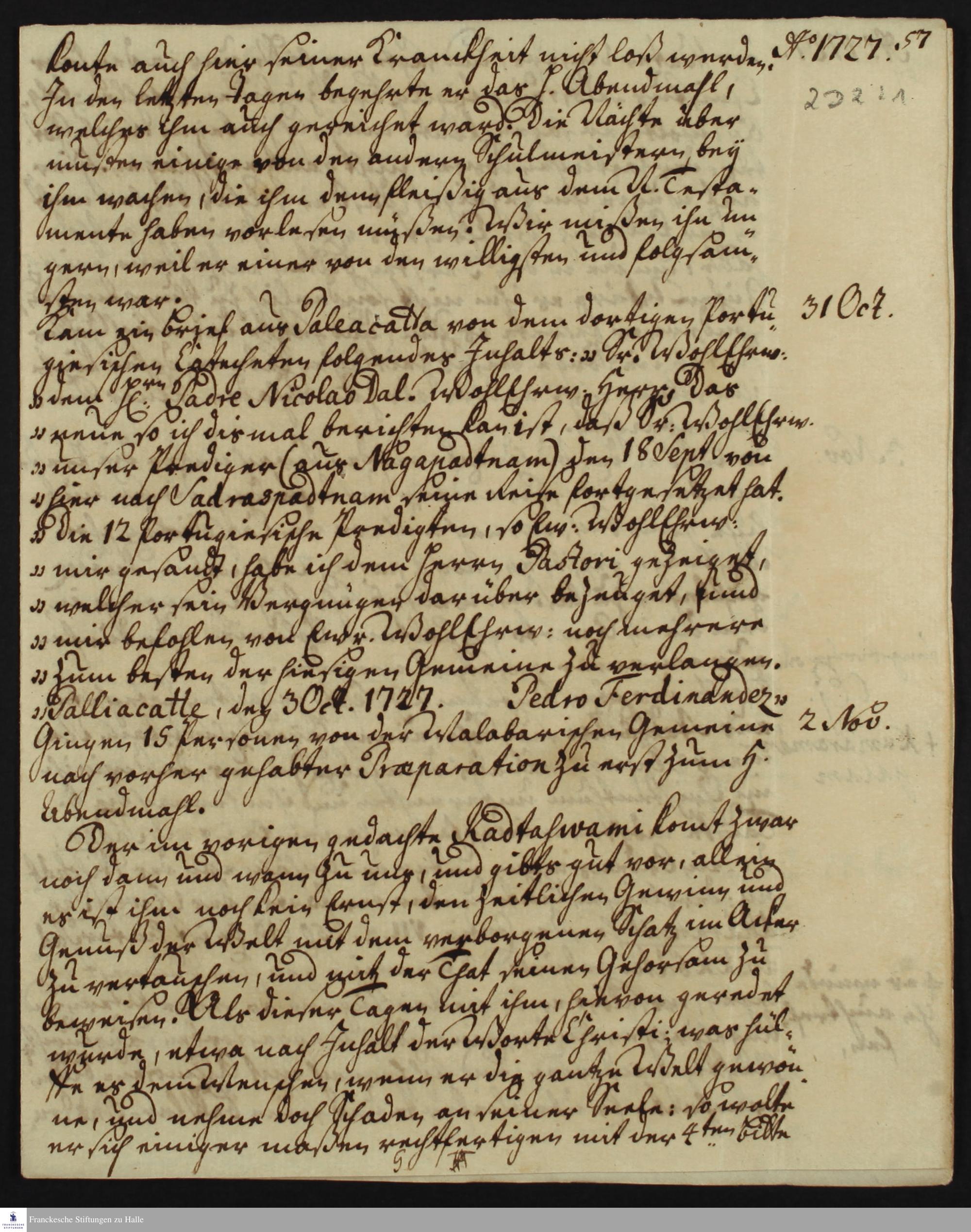 Tagebuch von Nikolaus Dal, Martin Bosse, Christian Friedrich Pressier und Christoph Theodosius Walther.