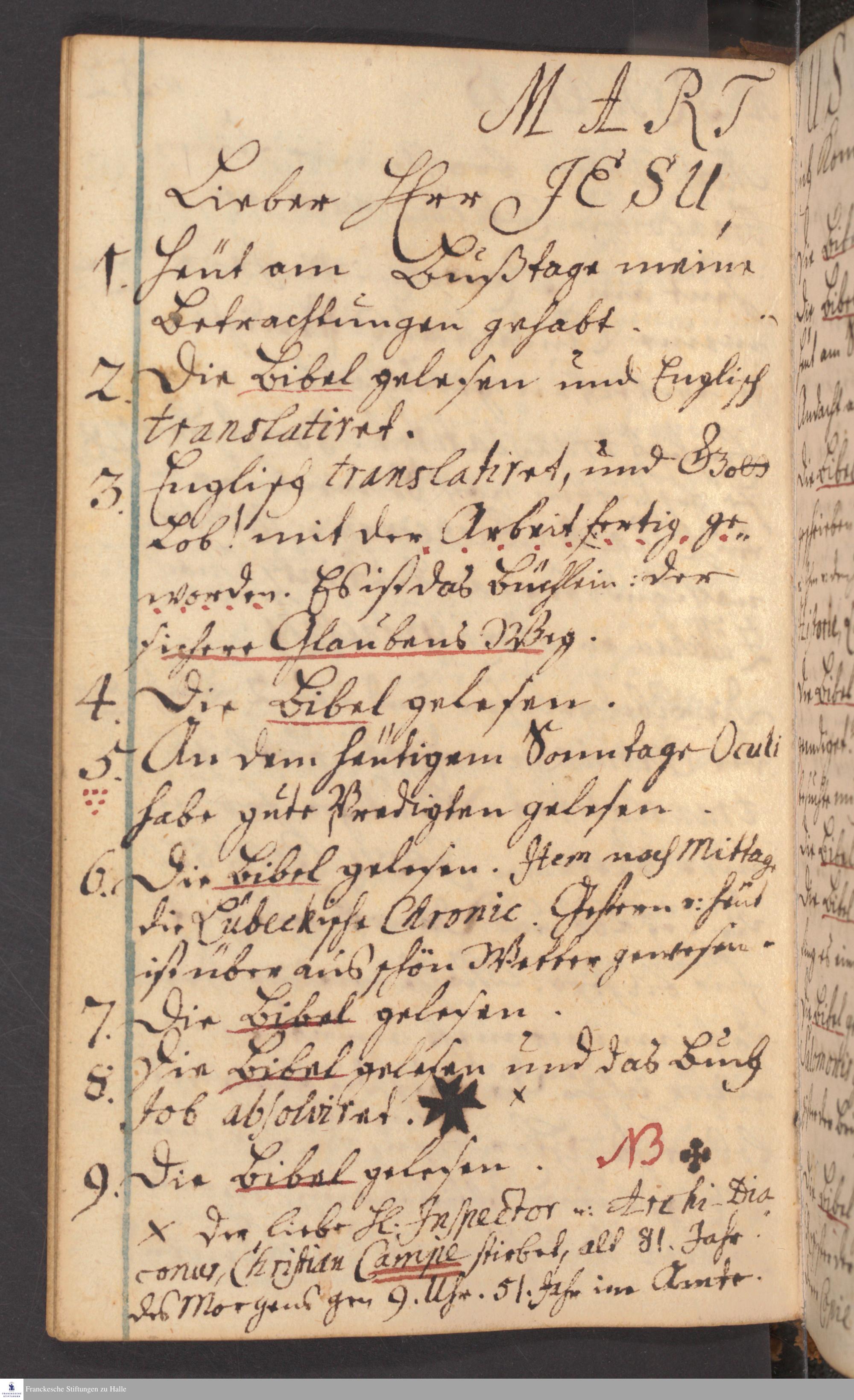 Tagebuch von Benjamin Schultze.
