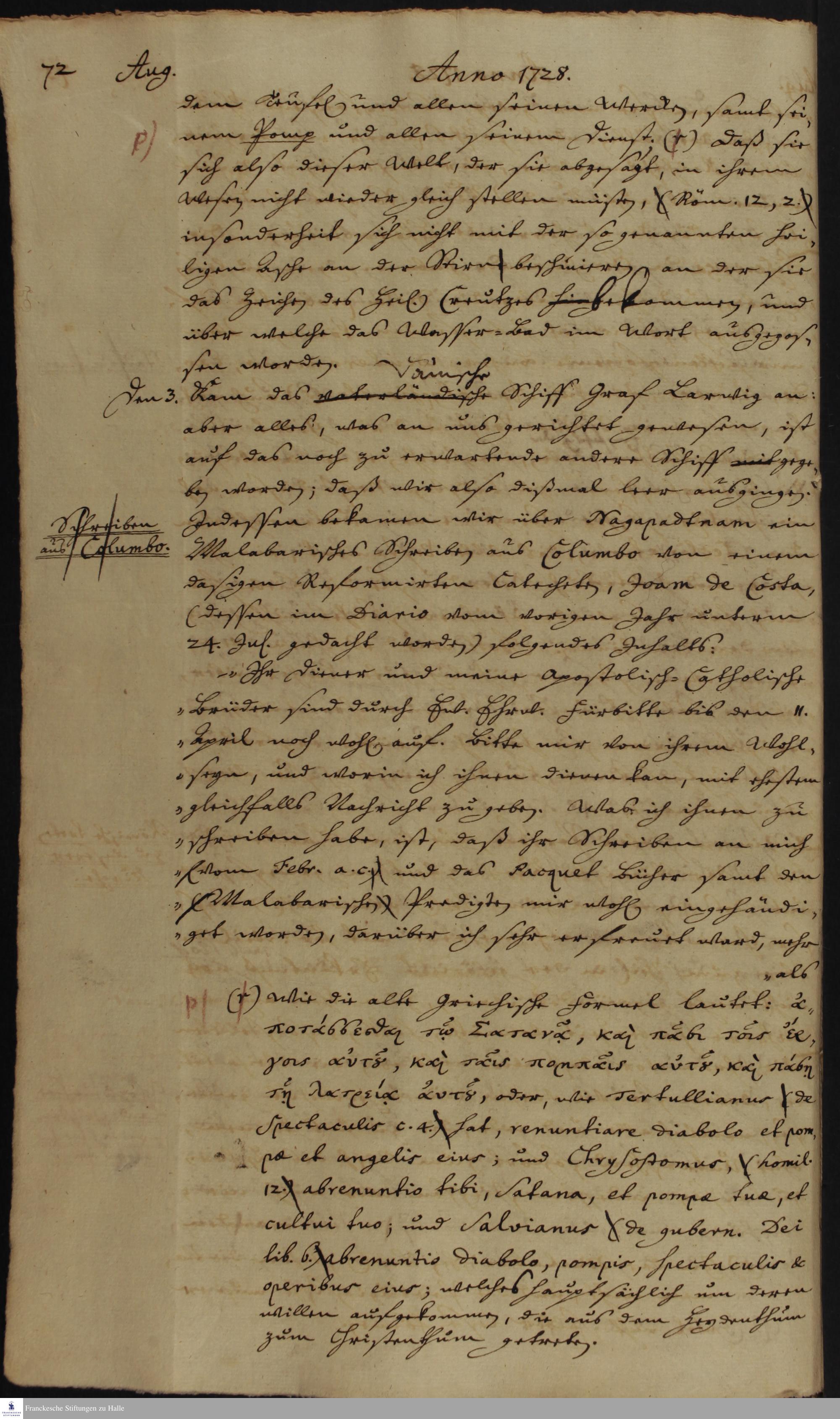 Tagebuch von [Nikolaus Dal, Martin Bosse, Christian Friedrich Pressier] und [Christoph Theodosius Walther].