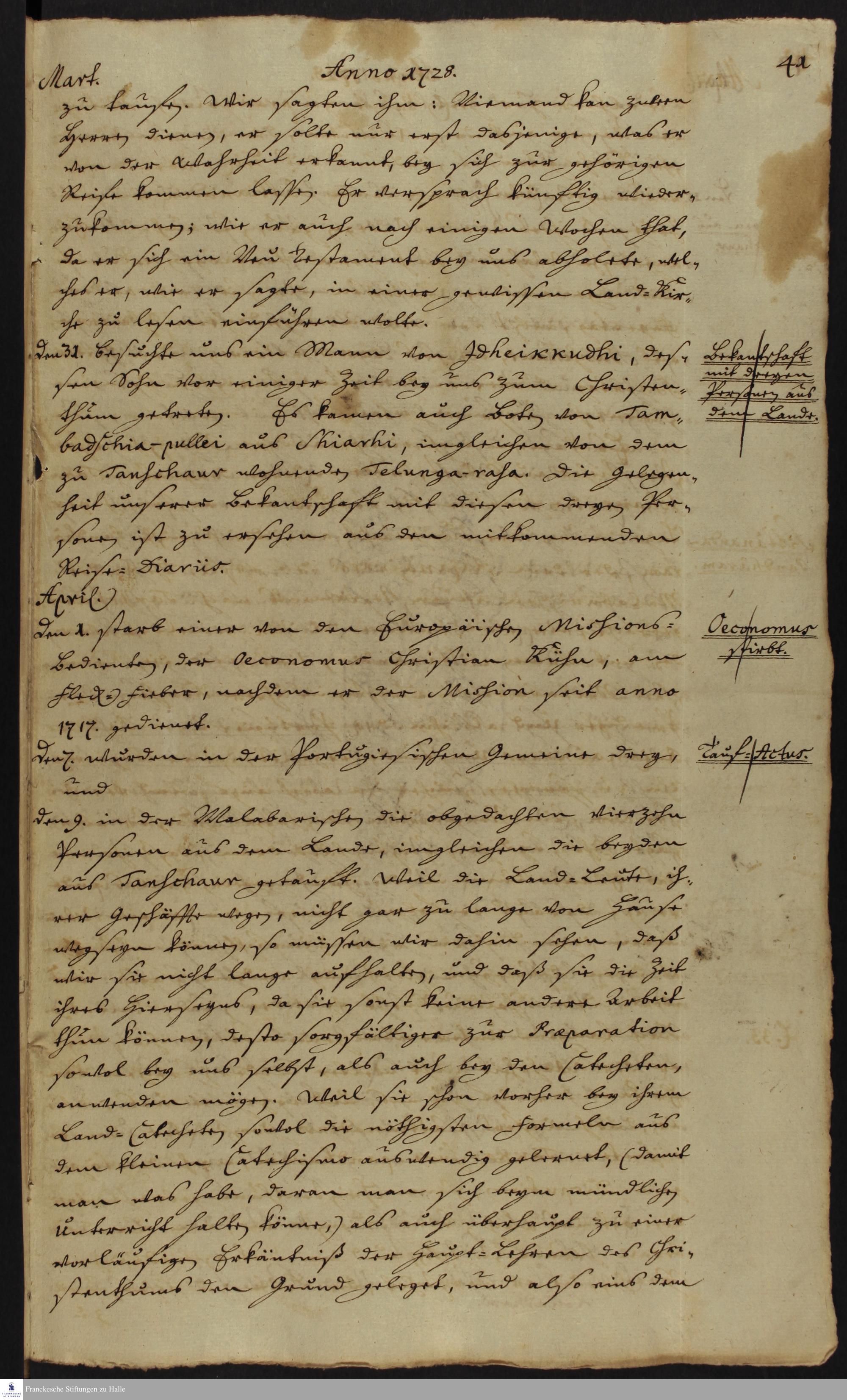 Tagebuch von [Nikolaus Dal, Martin Bosse, Christian Friedrich Pressier] und [Christoph Theodosius Walther].