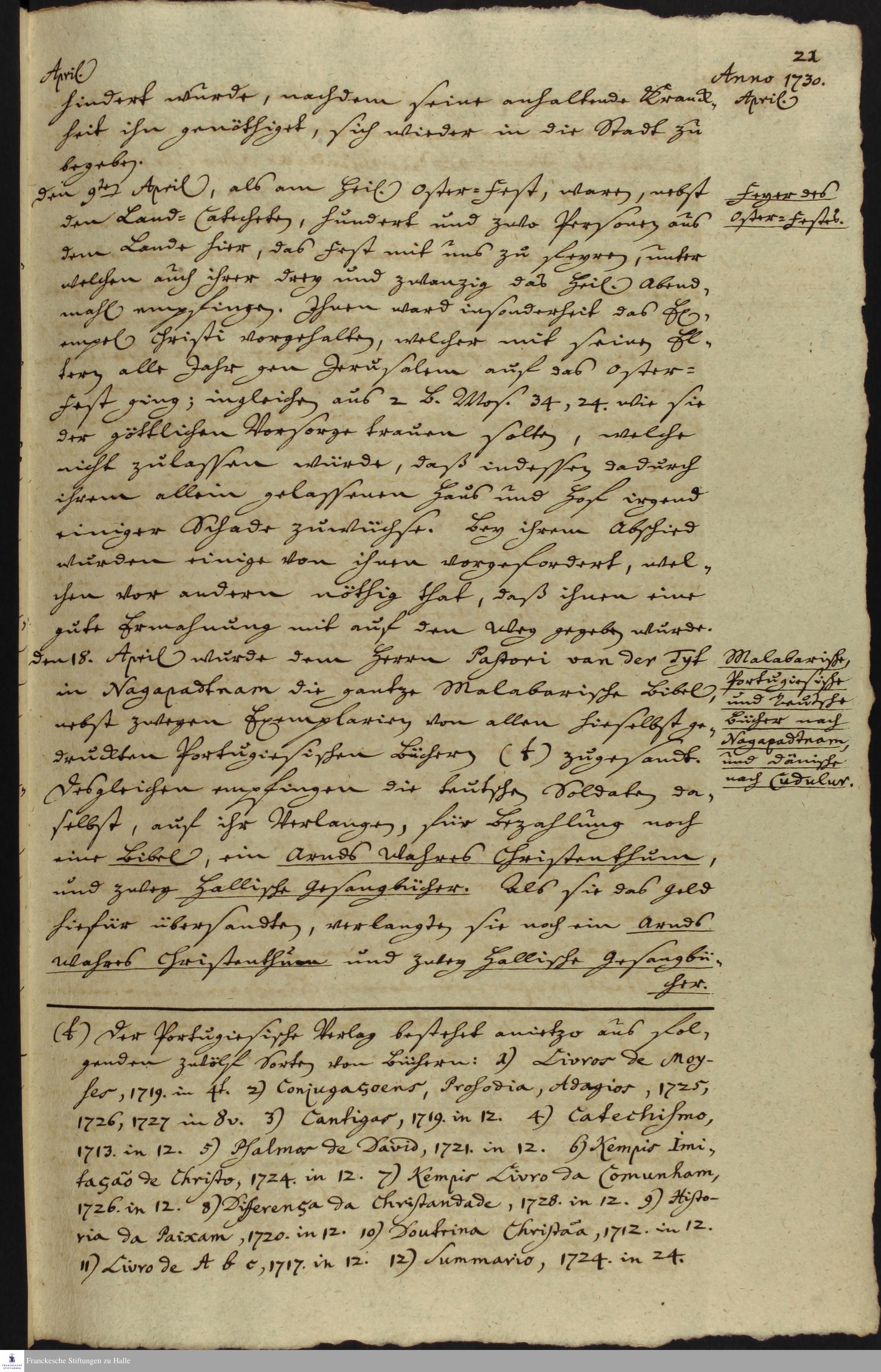 Tagebuch von Nikolaus Dal, Martin Bosse, Christian Friedrich Pressier, Christoph Theodosius Walther, Andreas Worm und Samuel Gottlieb Richtsteig.