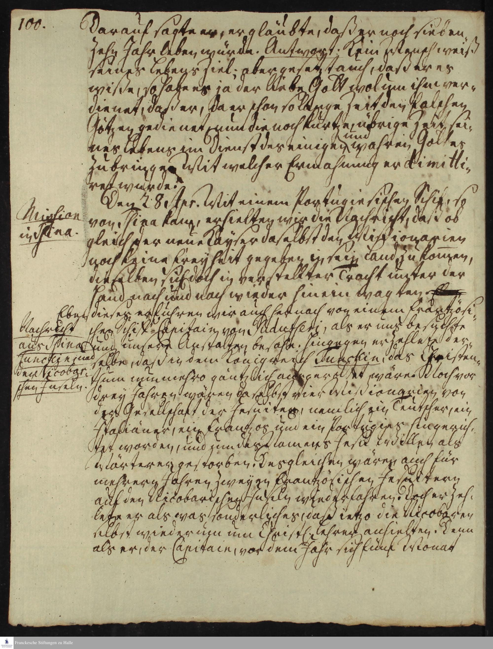 Tagebuch von Nikolaus Dal, Martin Bosse, Christoph Theodosius Walther, Gottfried Wilhelm Obuch, Johann Christian Wiedebrock und Johann Balthasar Kohlhoff.