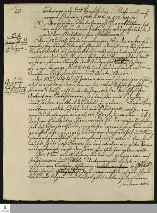 Tagebuch von Nikolaus Dal, Martin Bosse, Gottfried Wilhelm Obuch, Johann Christian Wiedebrock, Johann Balthasar Kohlhoff, Johann Philipp Fabricius und Daniel Zeglin.