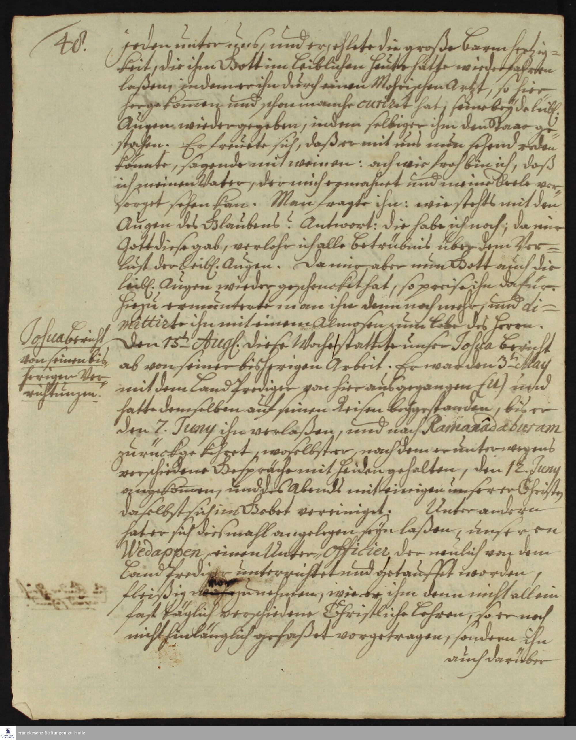 Tagebuch von Nikolaus Dal, Martin Bosse, Gottfried Wilhelm Obuch, Johann Christian Wiedebrock, Johann Balthasar Kohlhoff, Johann Philipp Fabricius und Daniel Zeglin.