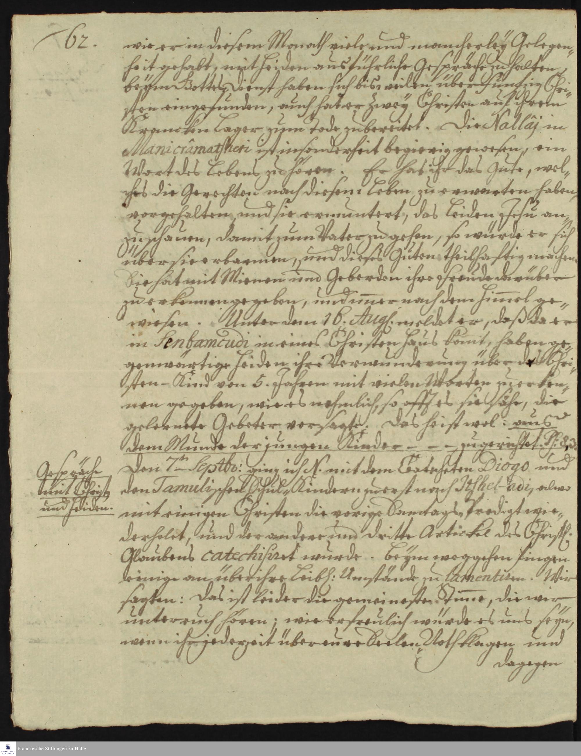 Tagebuch von Nikolaus Dal, Martin Bosse, Gottfried Wilhelm Obuch, Johann Christian Wiedebrock, Johann Balthasar Kohlhoff, Johann Philipp Fabricius und Daniel Zeglin.