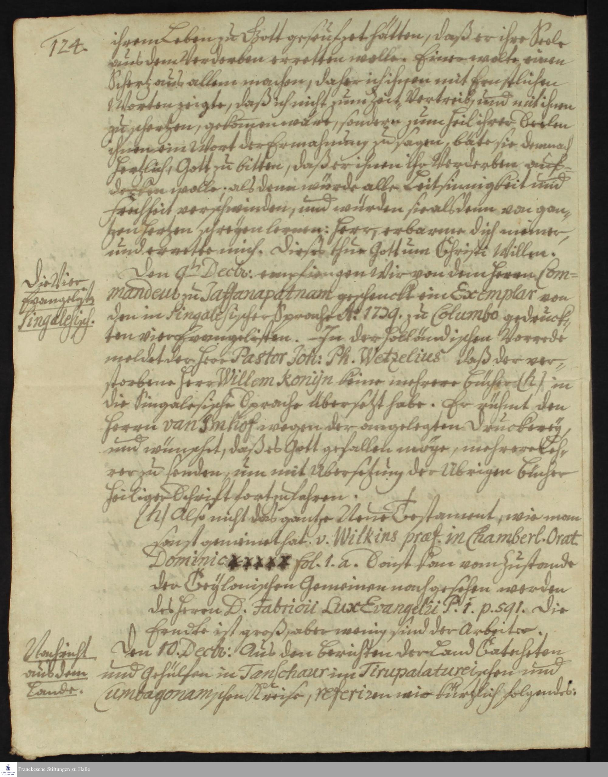 Tagebuch von Nikolaus Dal, Martin Bosse, Gottfried Wilhelm Obuch, Johann Christian Wiedebrock, Johann Balthasar Kohlhoff, Johann Philipp Fabricius und Daniel Zeglin.