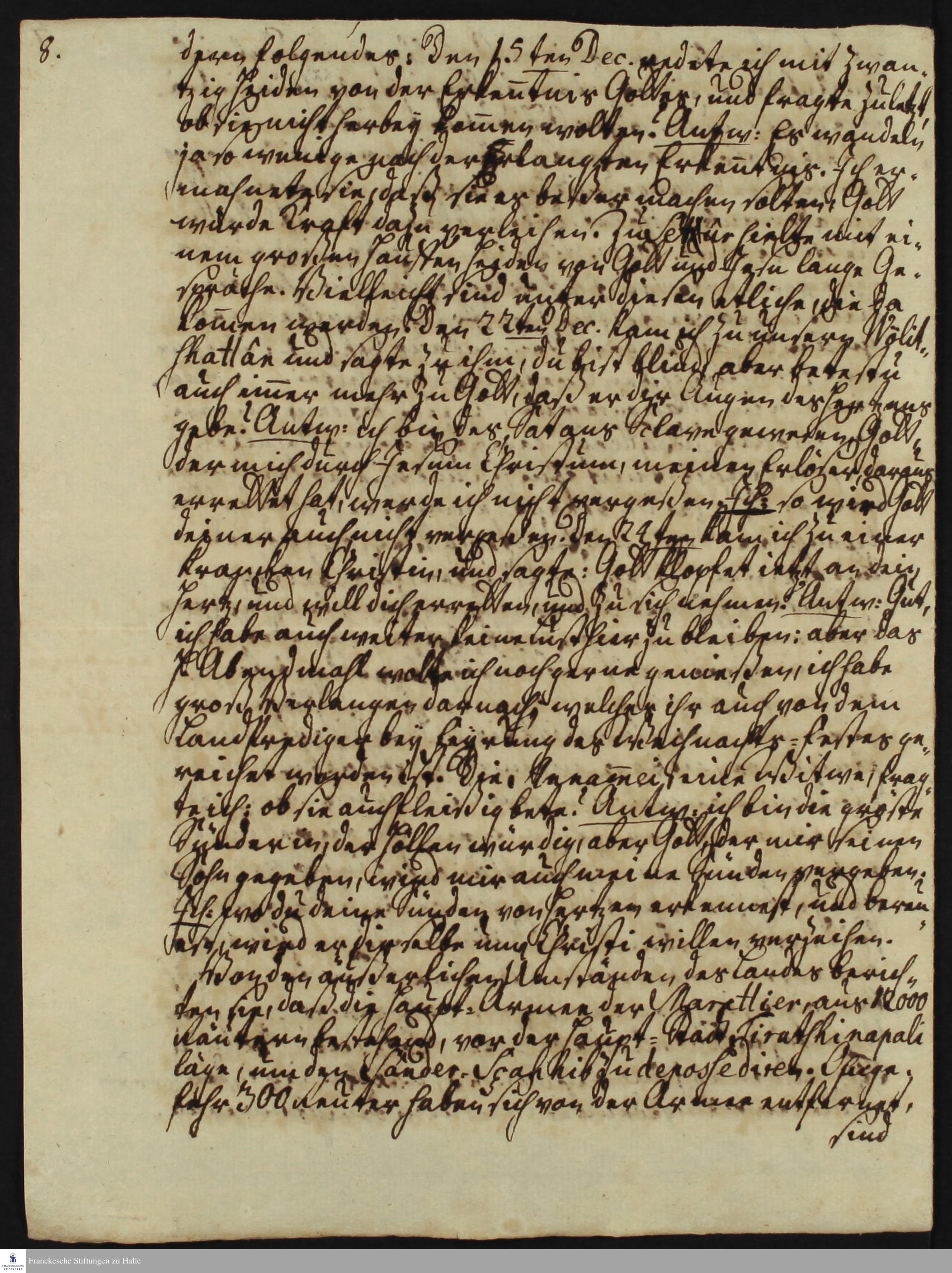 Tagebuch von Nikolaus Dal, Martin Bosse, Gottfried Wilhelm Obuch, Johann Christian Wiedebrock, Johann Balthasar Kohlhoff, Johann Philipp Fabricius und Daniel Zeglin.