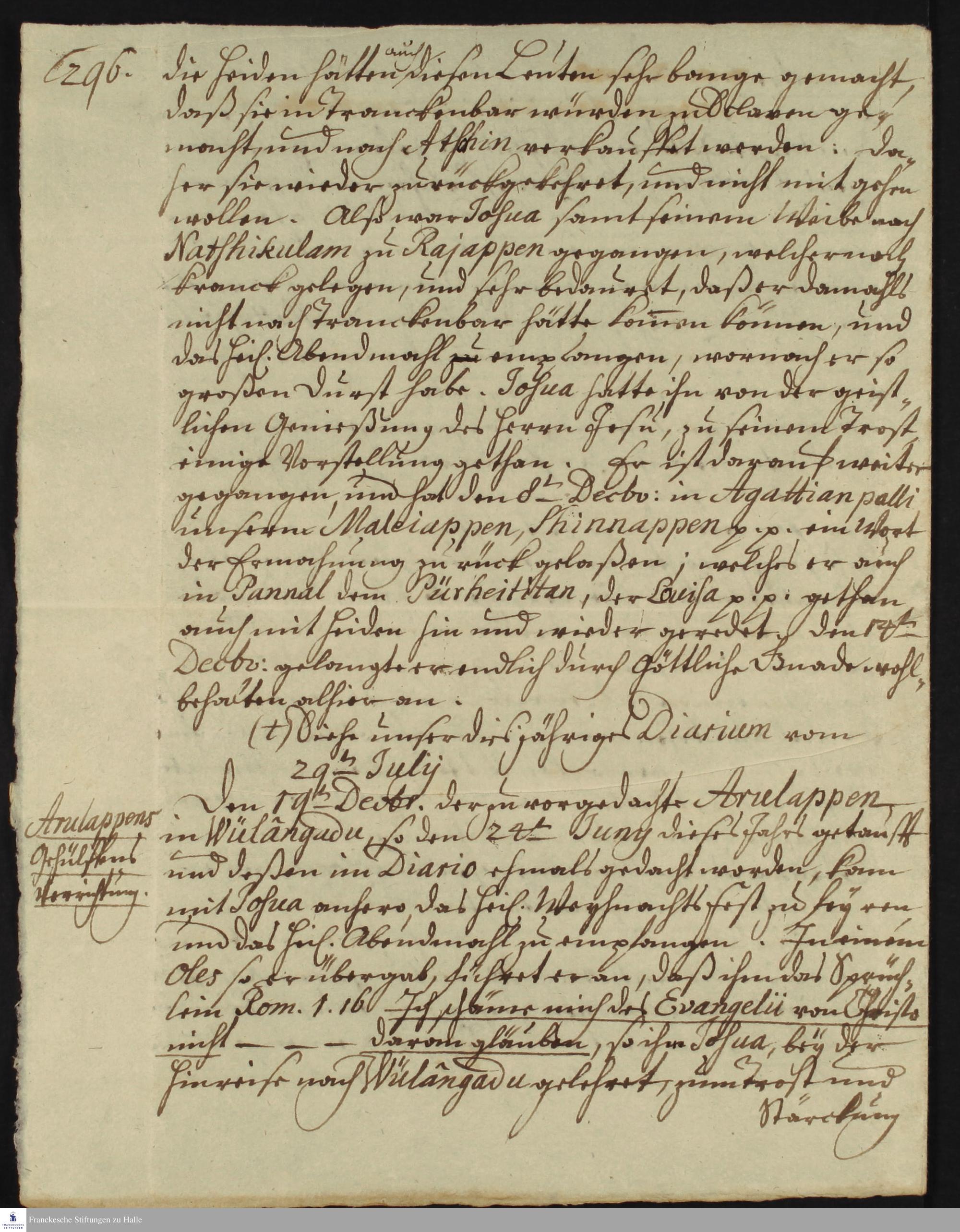 Tagebuch von Nikolaus Dal, Martin Bosse, Gottfried Wilhelm Obuch, Johann Christian Wiedebrock, Johann Balthasar Kohlhoff, Johann Philipp Fabricius und Daniel Zeglin.