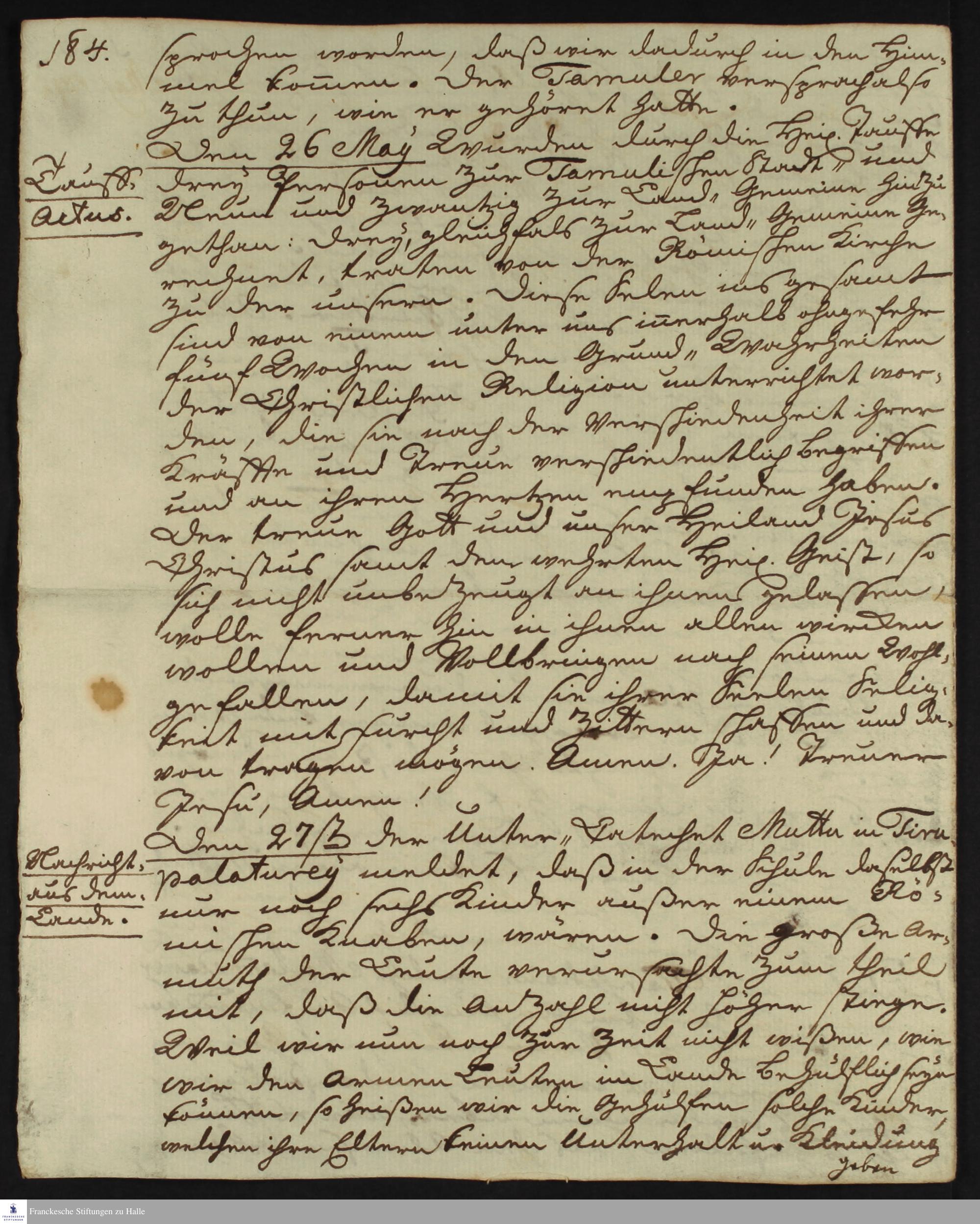 Tagebuch von Nikolaus Dal, Martin Bosse, Gottfried Wilhelm Obuch, Johann Christian Wiedebrock, Johann Balthasar Kohlhoff, Daniel Zeglin und Oluf Maderup.