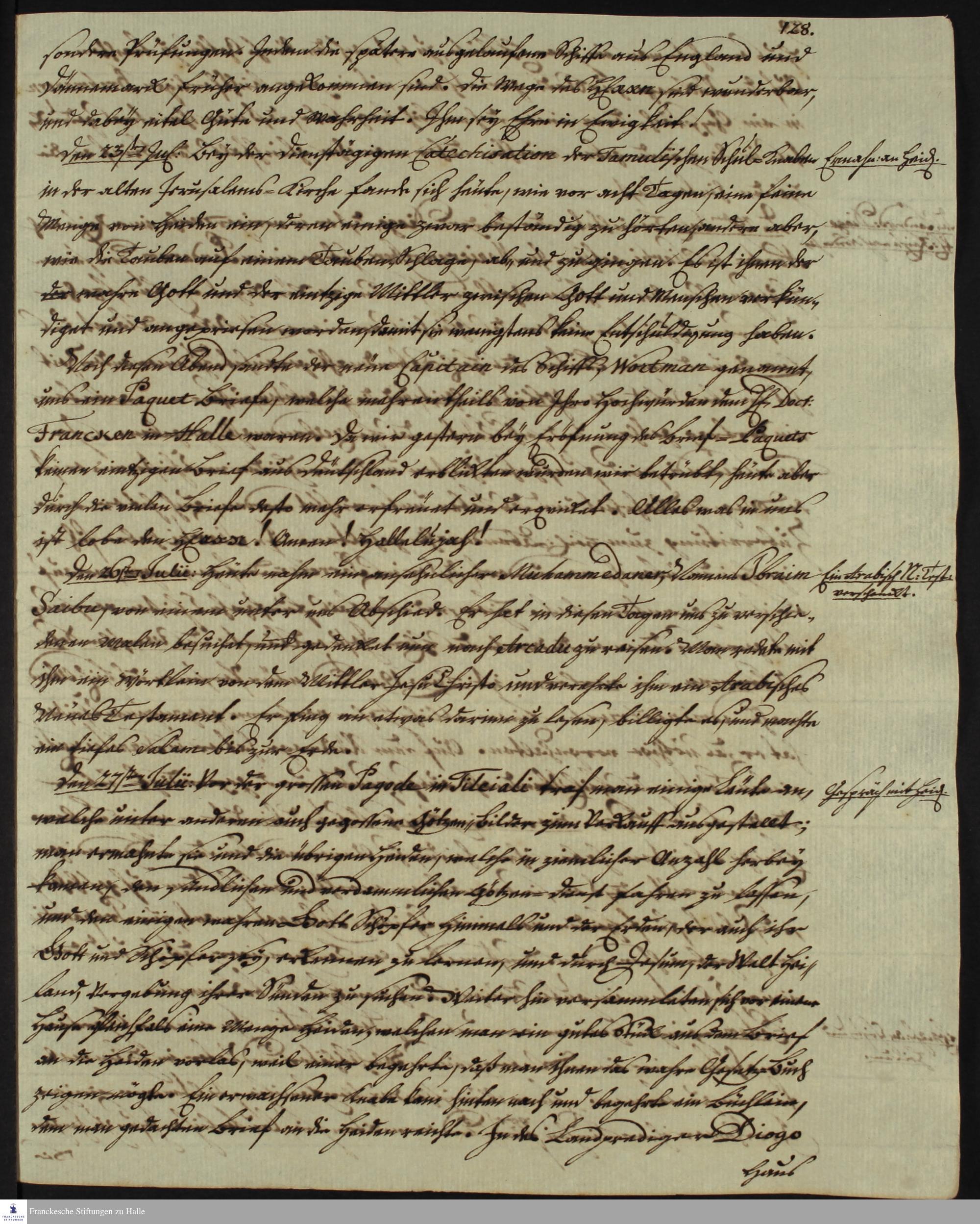 Tagebuch von Martin Bosse, Johann Christian Wiedebrock, Johann Balthasar Kohlhoff, Daniel Zeglin, Oluf Maderup und Jacob Klein.