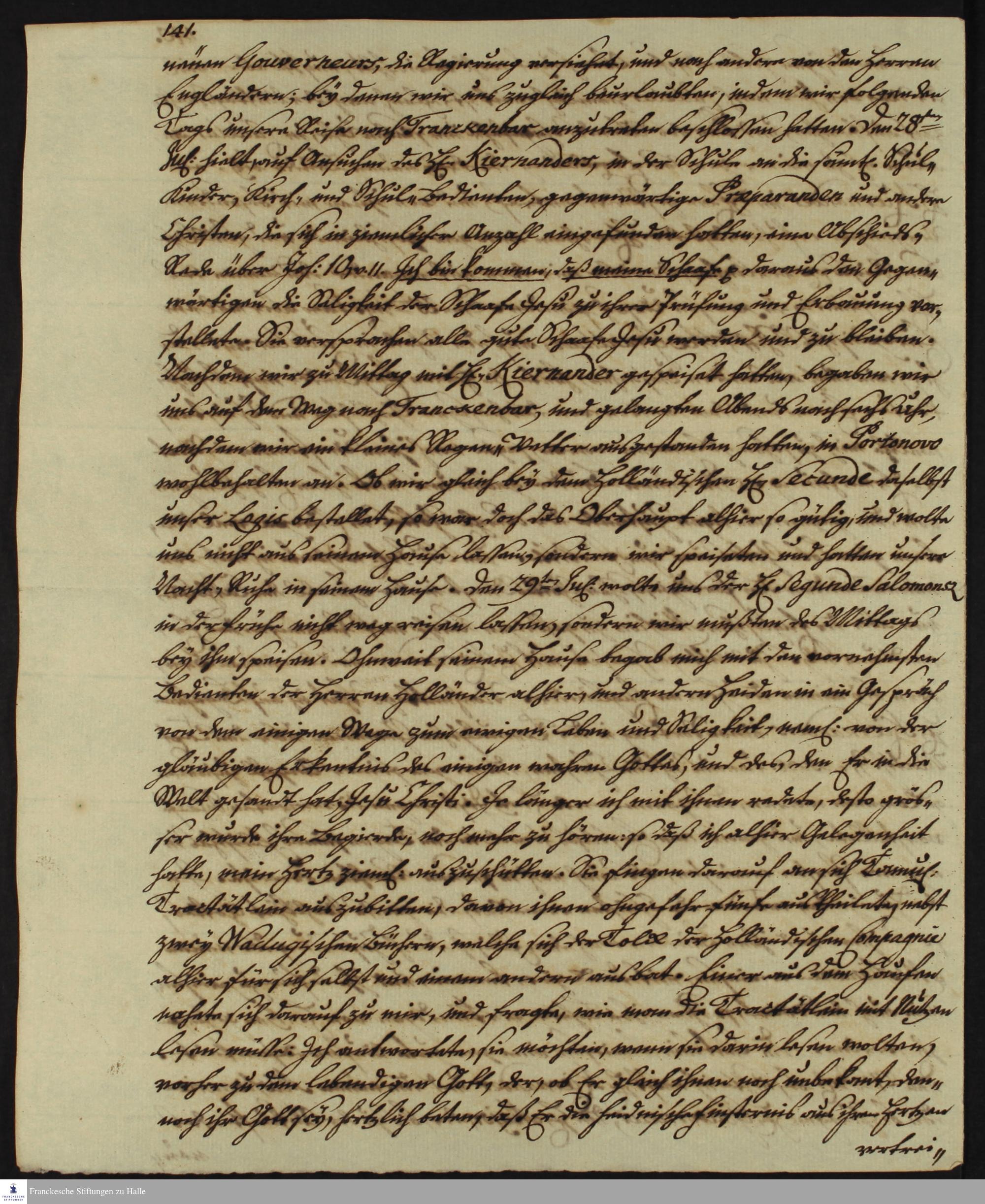 Tagebuch von Johann Christian Wiedebrock, Johann Balthasar Kohlhoff, Daniel Zeglin, Oluf Maderup, Jacob Klein, Christian Friedrich Schwartz und David Poltzenhagen.
