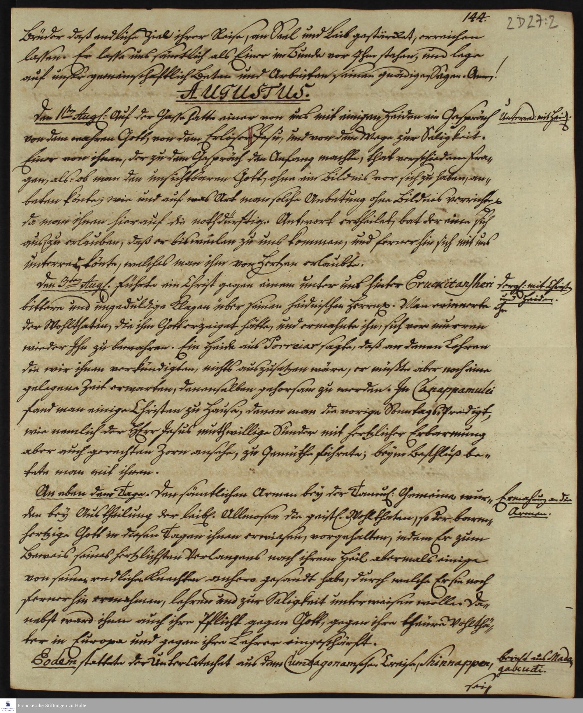 Tagebuch von Johann Christian Wiedebrock, Johann Balthasar Kohlhoff, Daniel Zeglin, Oluf Maderup, Jacob Klein, Christian Friedrich Schwartz und David Poltzenhagen.