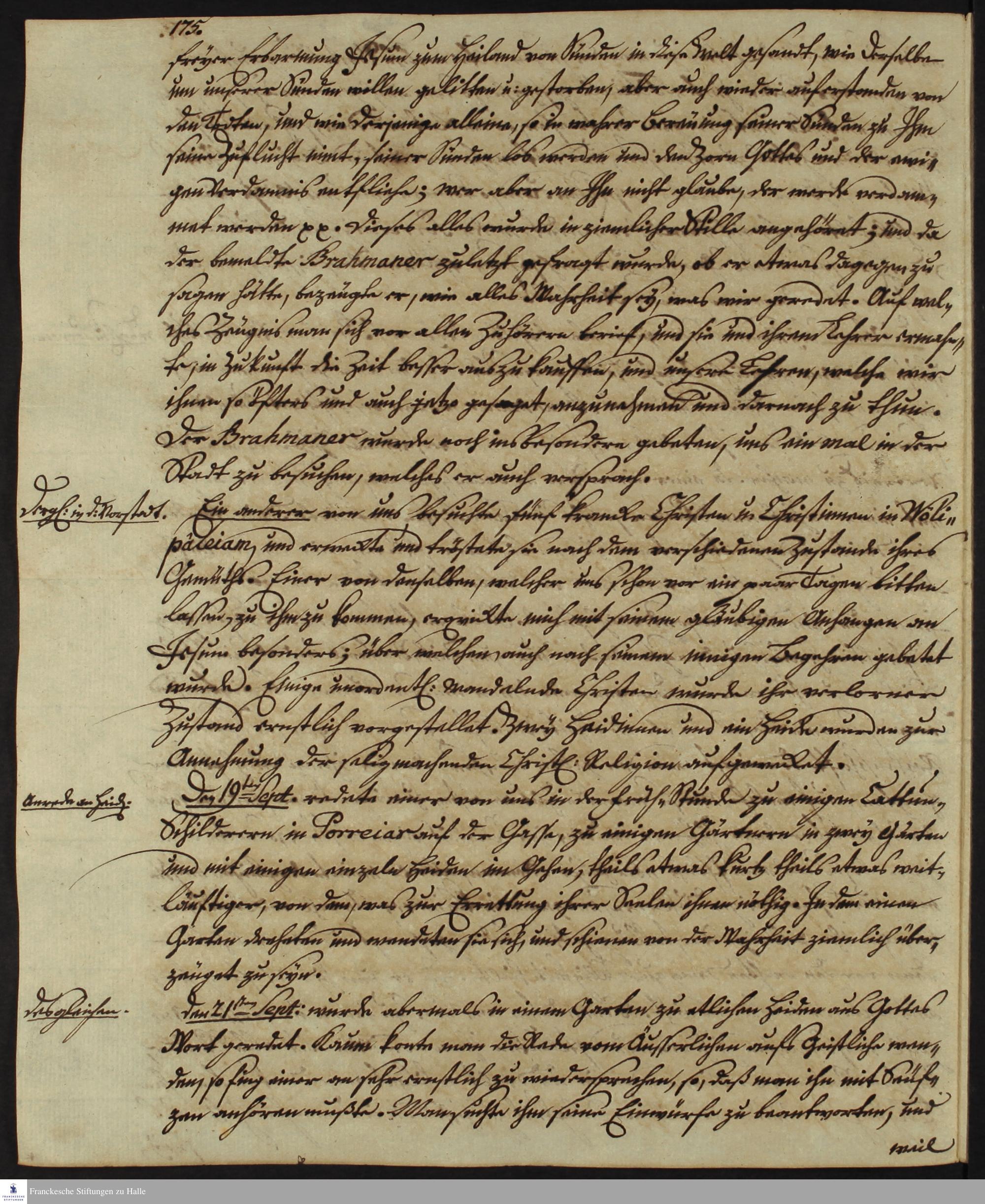 Tagebuch von Johann Christian Wiedebrock, Johann Balthasar Kohlhoff, Daniel Zeglin, Oluf Maderup, Jacob Klein, Christian Friedrich Schwartz und David Poltzenhagen.