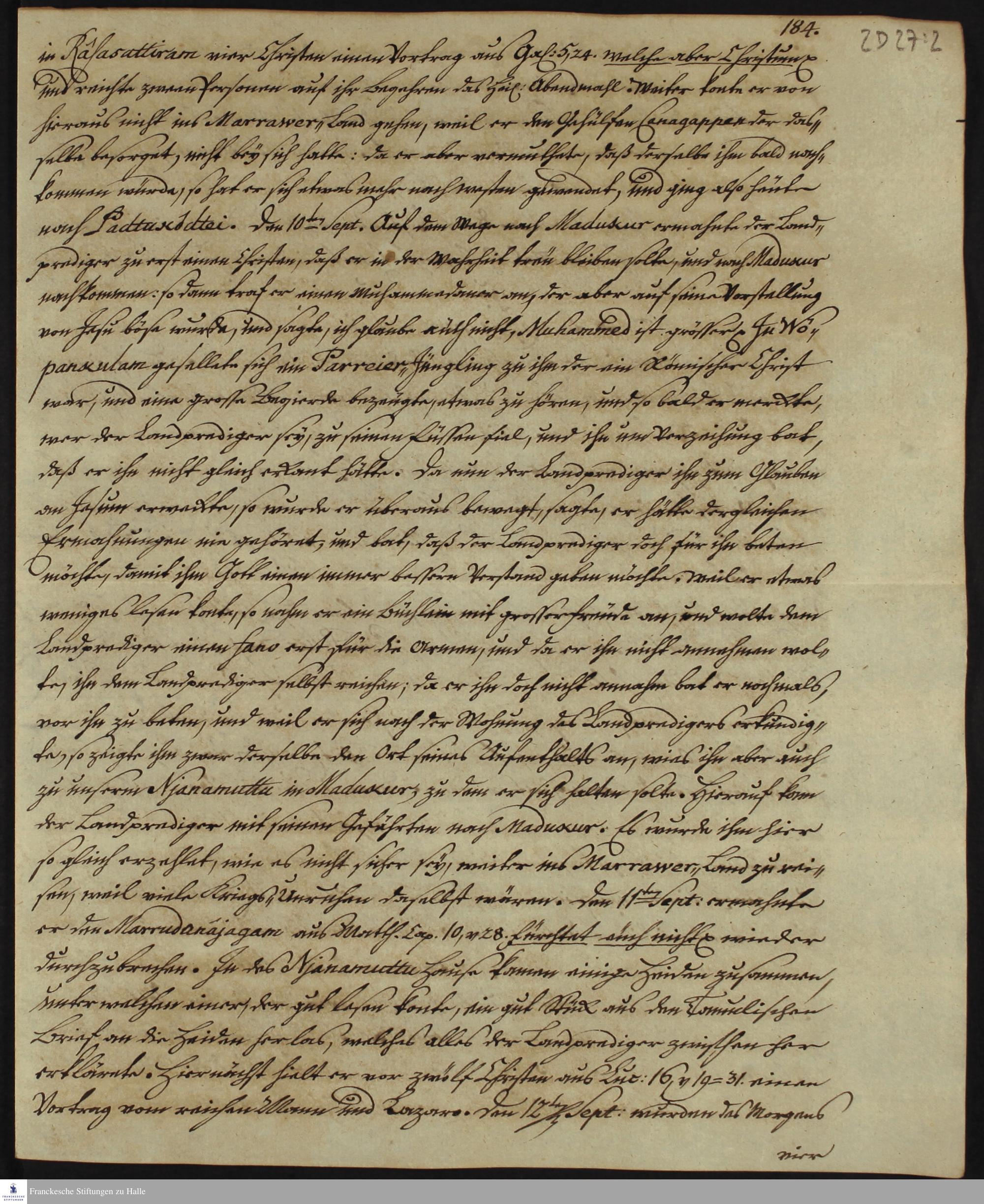Tagebuch von Johann Christian Wiedebrock, Johann Balthasar Kohlhoff, Daniel Zeglin, Oluf Maderup, Jacob Klein, Christian Friedrich Schwartz und David Poltzenhagen.