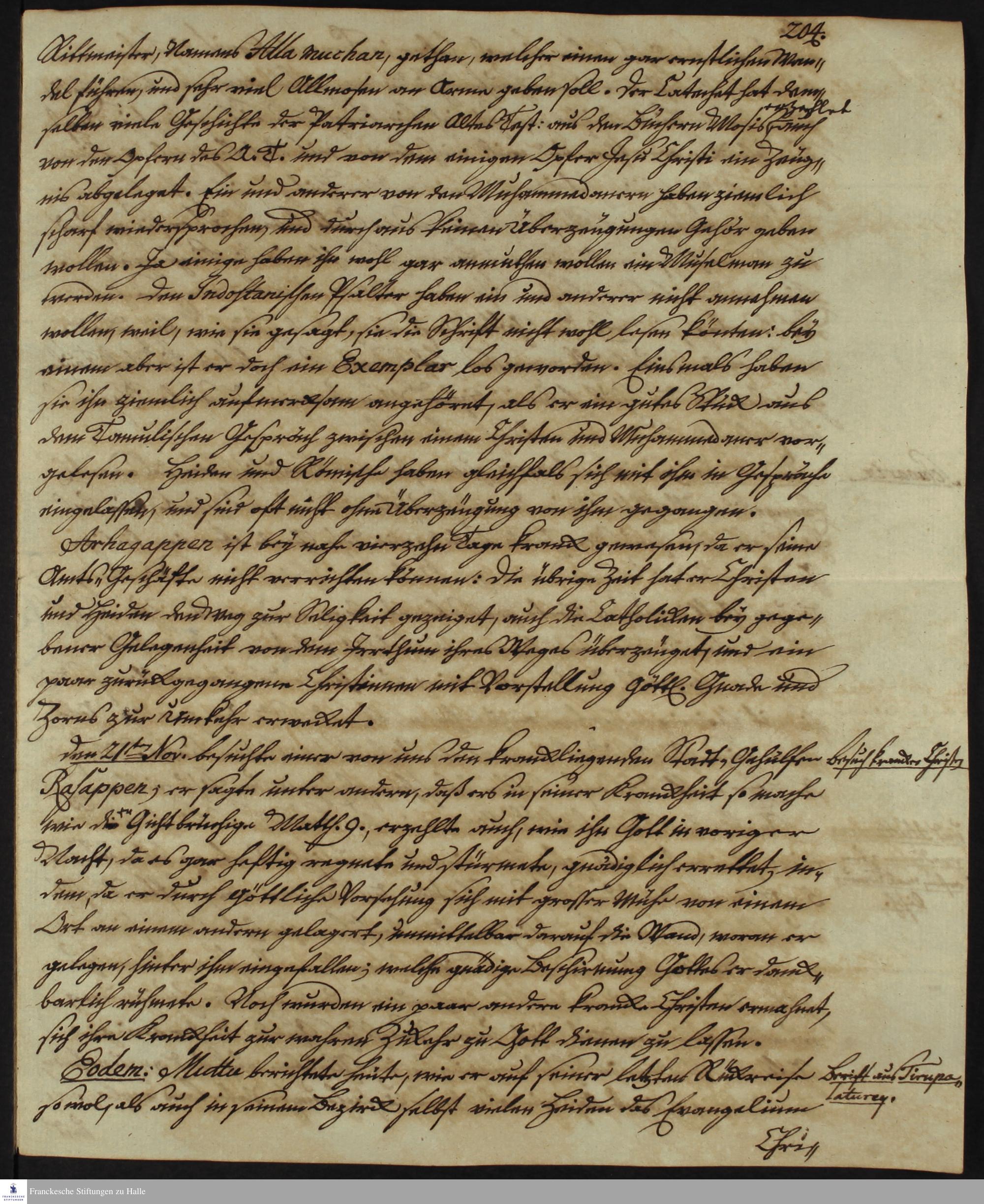 Tagebuch von Johann Christian Wiedebrock, Johann Balthasar Kohlhoff, Daniel Zeglin, Oluf Maderup, Jacob Klein, Christian Friedrich Schwartz und David Poltzenhagen.
