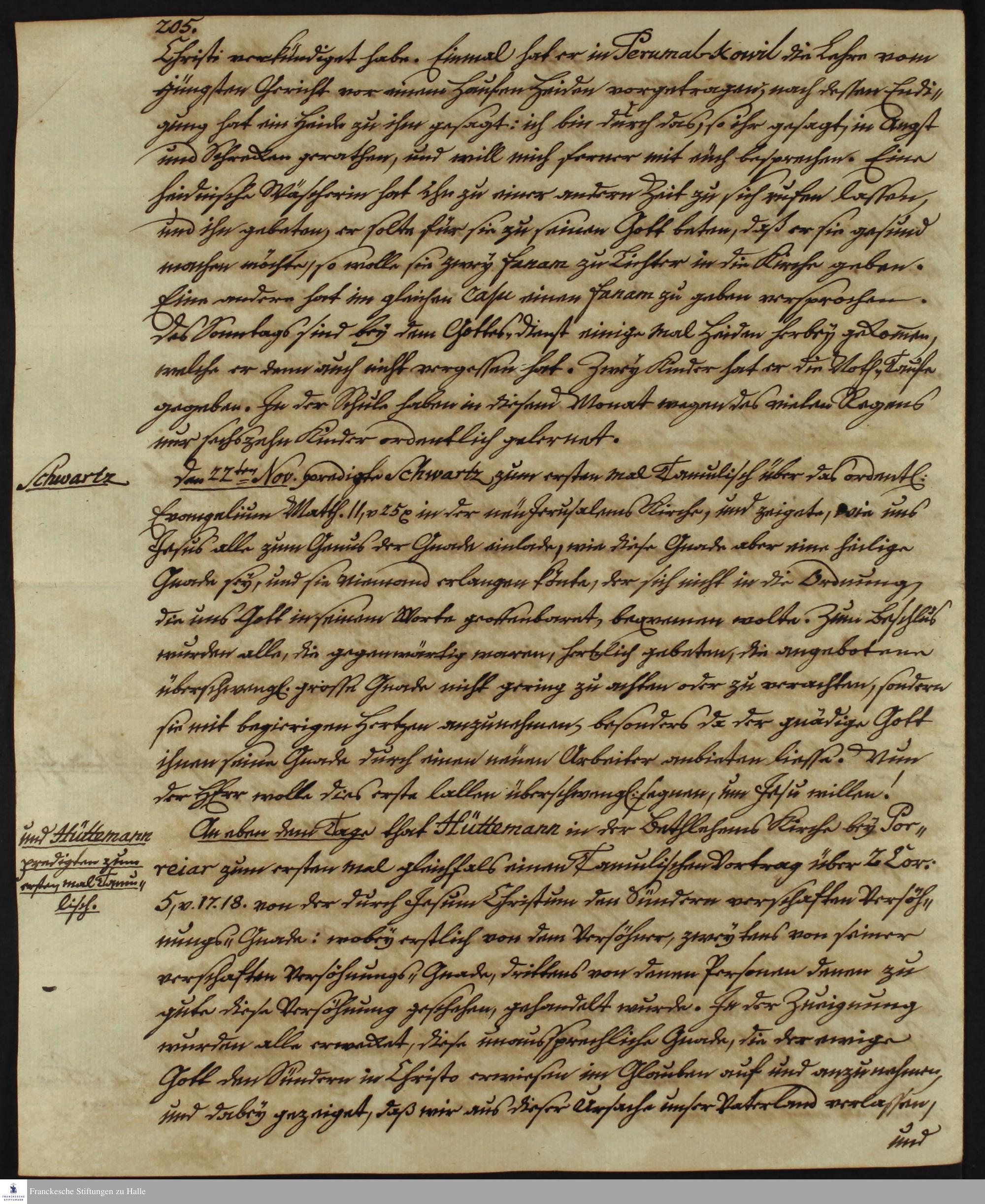 Tagebuch von Johann Christian Wiedebrock, Johann Balthasar Kohlhoff, Daniel Zeglin, Oluf Maderup, Jacob Klein, Christian Friedrich Schwartz und David Poltzenhagen.