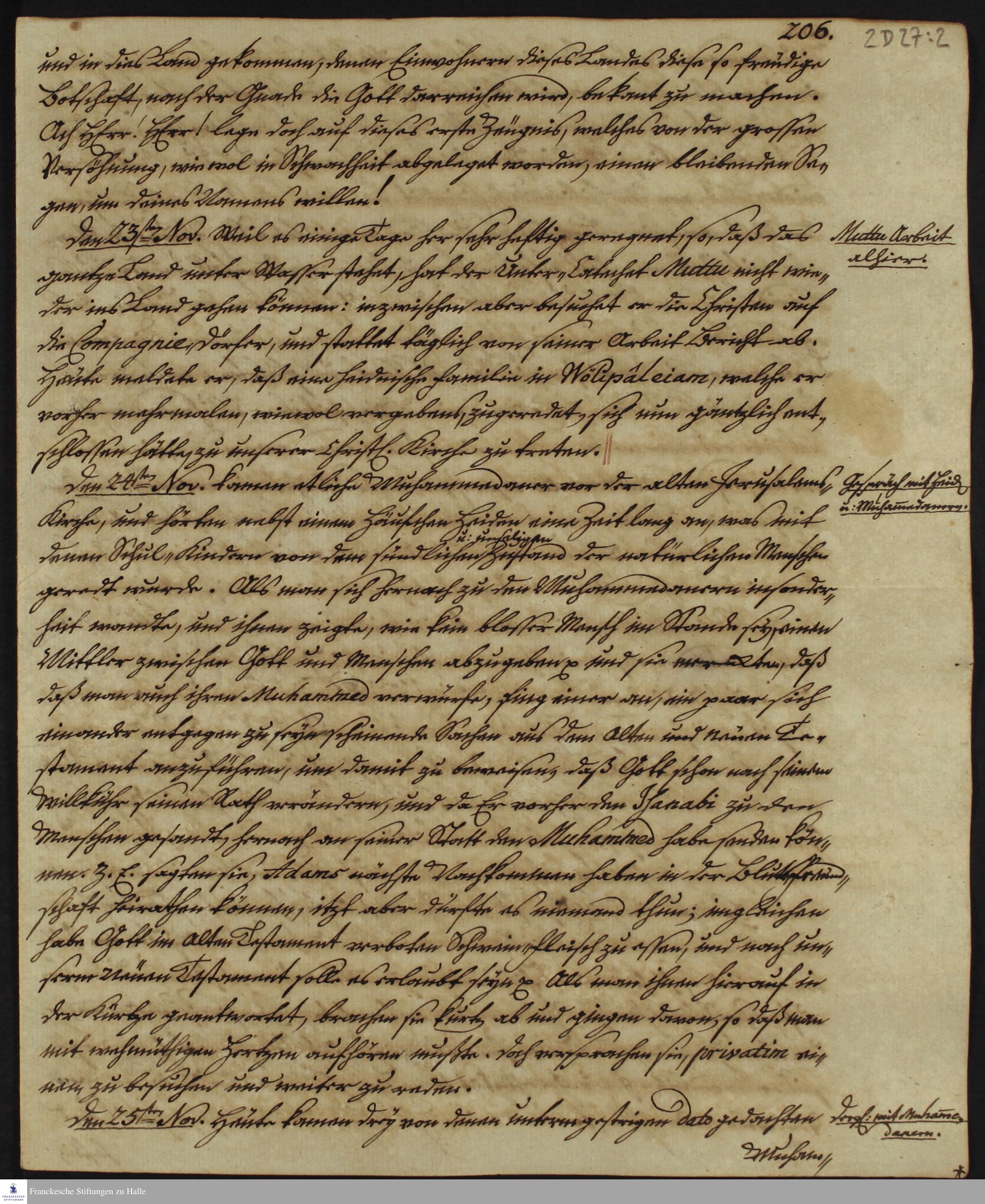 Tagebuch von Johann Christian Wiedebrock, Johann Balthasar Kohlhoff, Daniel Zeglin, Oluf Maderup, Jacob Klein, Christian Friedrich Schwartz und David Poltzenhagen.