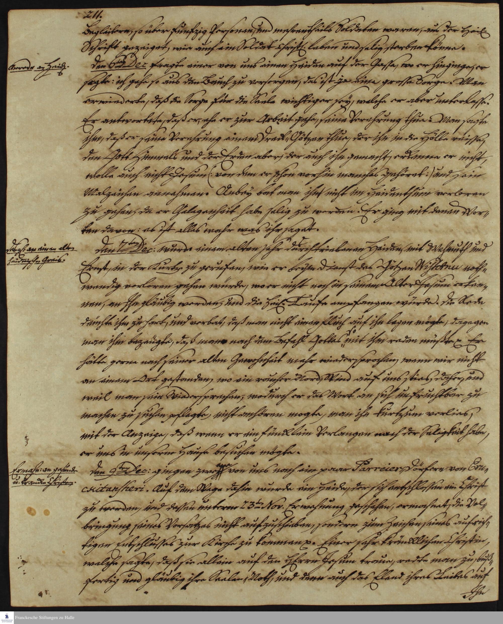 Tagebuch von Johann Christian Wiedebrock, Johann Balthasar Kohlhoff, Daniel Zeglin, Oluf Maderup, Jacob Klein, Christian Friedrich Schwartz und David Poltzenhagen.