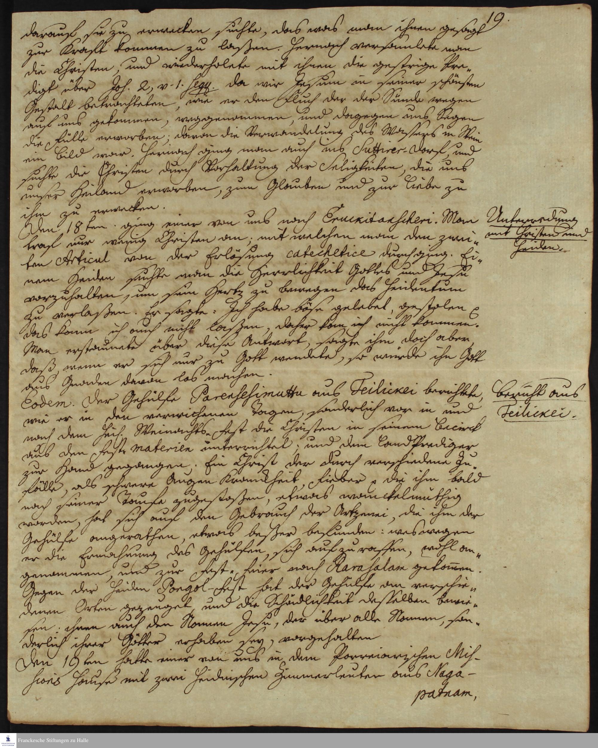 Tagebuch von Johann Christian Wiedebrock, Johann Balthasar Kohlhoff, Daniel Zeglin, Oluf Maderup, Jacob Klein, Christian Friedrich Schwartz und David Poltzenhagen.