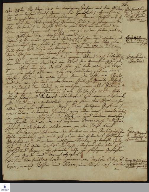Tagebuch von Johann Christian Wiedebrock, Johann Balthasar Kohlhoff, Daniel Zeglin, Oluf Maderup, Jacob Klein, Christian Friedrich Schwartz und David Poltzenhagen.
