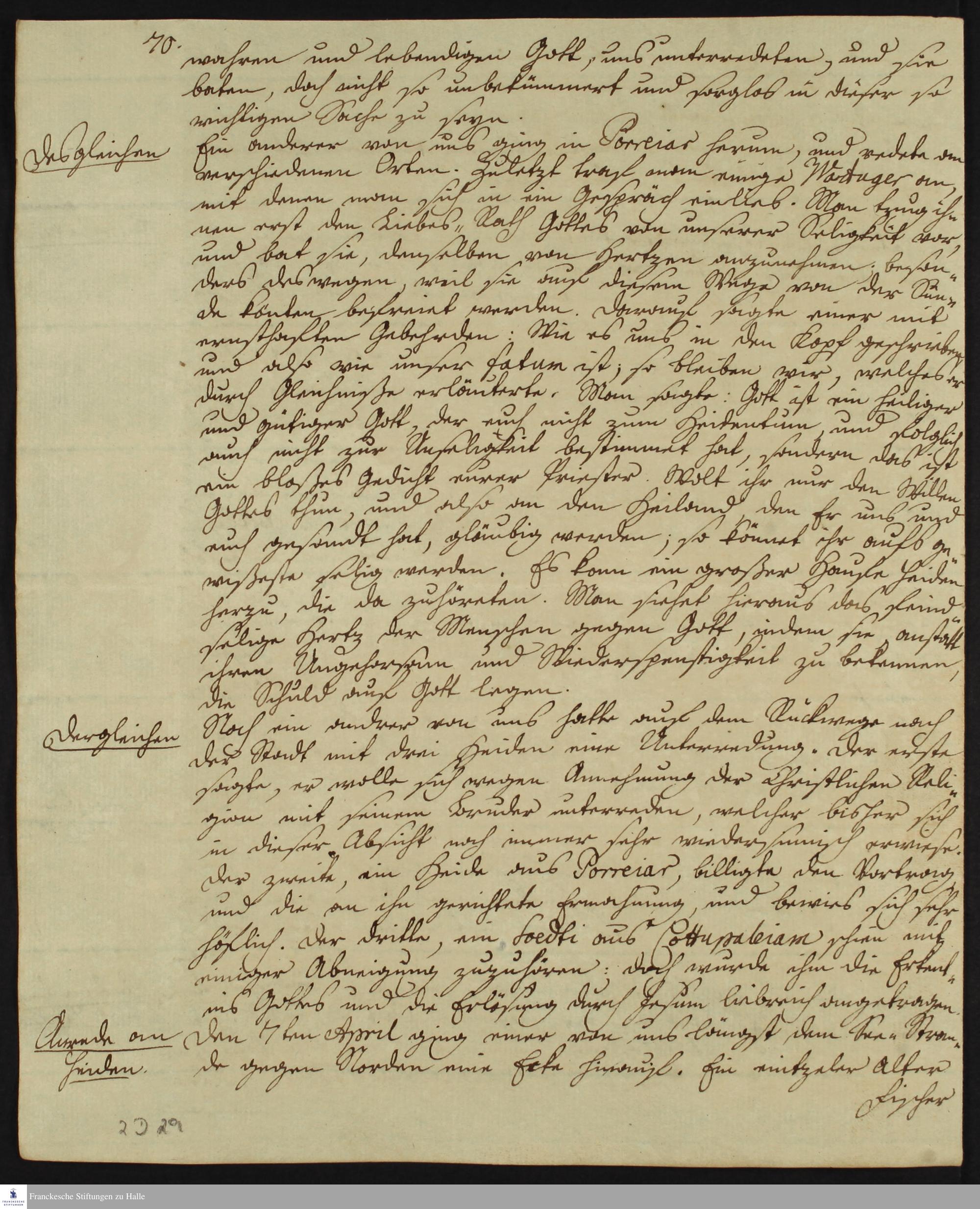 Tagebuch von Johann Christian Wiedebrock, Johann Balthasar Kohlhoff, Daniel Zeglin, Oluf Maderup, Jacob Klein, Christian Friedrich Schwartz und David Poltzenhagen.