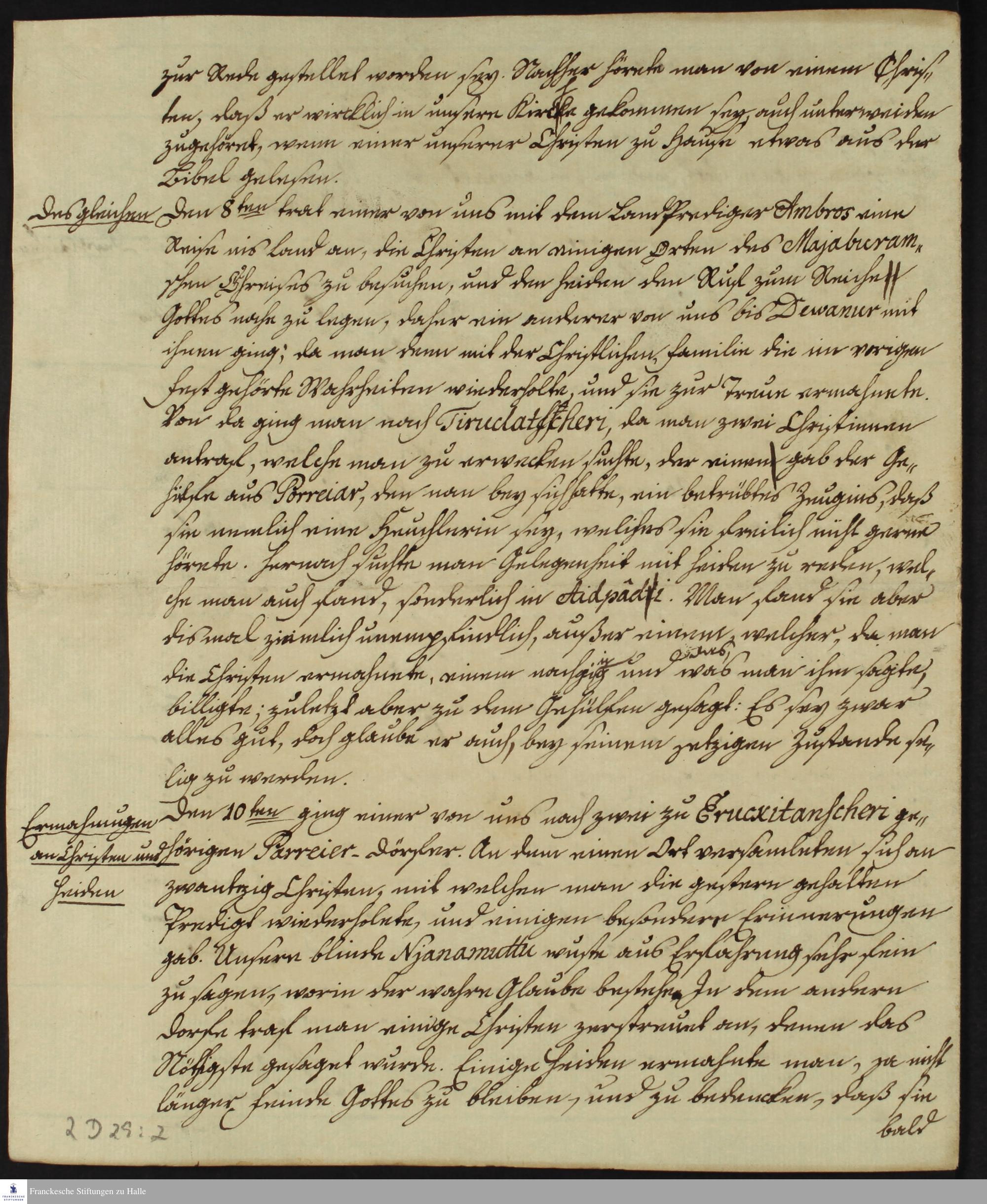 Tagebuch von Johann Christian Wiedebrock, Johann Balthasar Kohlhoff, Daniel Zeglin, Oluf Maderup, Jacob Klein, Christian Friedrich Schwartz und David Poltzenhagen.